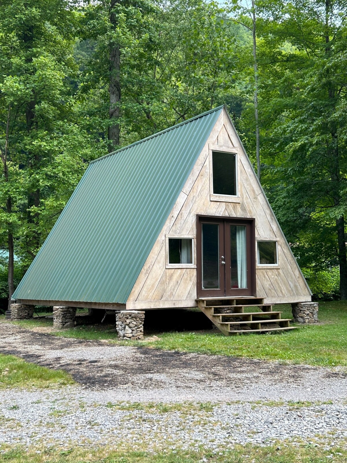 #1 Cabin Béla uziva ngathi uqhelekile ngazo zonke izinto ezinokusetyenziswa zale mihla. Le deluxe A-frame inegumbi lokuhlambela elipheleleyo elinendawo yokuhlamba. Ngaphakathi kukho ikhitshi elincinci efrijini, i-microwave, isinki encinci nomatshini wokwenza ikofu; ibhedi enkulu; isofa yokulala epheleleyo; i-recliner; i-TV; kunye nendawo yokutyela. Le ndlu yamaplanga ineyunithi encinci enomtsalane yokufudumeza nokupholisa. Ilungele iindwendwe enye ukuya kwezine kwiibhedi ezimbini okanye ziboleke kunye nomatrasi ompontshwayo. Izinto zebhedi nezinto zasekhitshini zinikezelwa qho xa kuza kuhlalwa.
