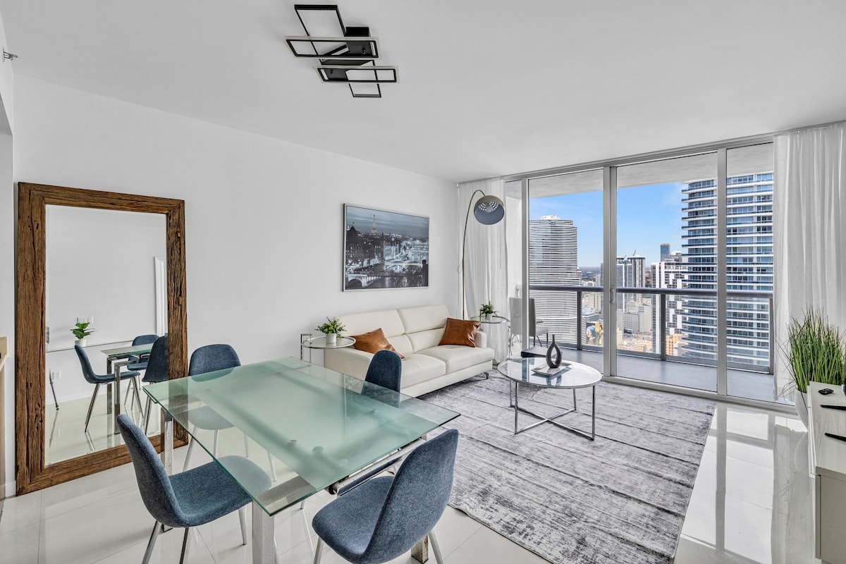 Yonwabela le Penthouse isembindini (42nd floor.high ceilings) embindini weMiami. Mins 2 Bkll City Centre, Beaches, Design D, wynwood, n Best restaurants.Tastefully Remodeled n Furnished, Sparkling clean, BRIGHT, modern 1bed 1bath w AMAZING CITY view n Partial Ocean view. Ikhitshi, Indawo Yokuhlamba Iimpahla, Izitulo Zaselwandle Ezipholileyo. I-King bed n Sofa b. Indlela Ephucukileyo yokwenza mnyama Umthunzi Iintsuku eziyi-4 Ezinde. Ukutshaya, Izilwanyana zasekhaya namatheko AWAVUMELEKANGA. Undwendwe kufuneka luthumele i-imeyile yesazisi ukuze lusayine ukubhalisa.