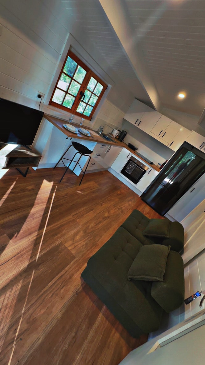 Phola uze uzihlaziye kule ndlu yamaplanga ‘Yabantu Abadala Kuphela‘, ’Engenazilwanyana Zasekhaya‘ ‘enebhafu enamanzi ashushu’ kwiihektare eziyi-16 zehlathi elikhuselweyo, kwimizuzu eyi-35 kuphela ukusuka eBrisbane CBD. Yonwabela ibhotile yamabhamuza abuka intaba 'kwibhafu enamanzi ashushu‘ okanye ubukele imuvi yothando kule ndawo yeholide yasemaphandleni, epholileyo, engenabantu abaninzi. Indawo entle yokubona amatyholo ehamba kwiindawo ezidumileyo kunye neentaka ezininzi zomthonyama kunye nezilwanyana zasendle.