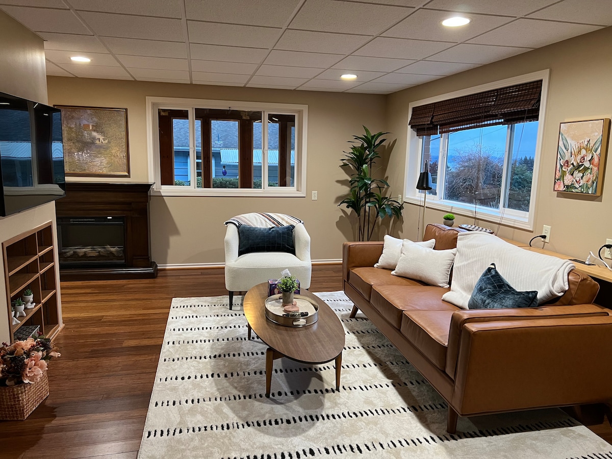 I-New Walkway! Iflethi entle yegumbi lokulala elinye ekwicala lasekhohlo lekhaya lethu kunye nendawo yayo yokungena kunye neyadi esecaleni yabucala. Ngaphantsi kwemayile eyi-1 ukuya elunxwemeni, imizuzu eyi-5 ukuya kwisikhululo seenqwelo-moya nemizuzu eyi-15 ukuya edolophini eSeattle. Yonwabela iyunithi yakho yabucala kwingingqi entle ethe cwaka. Le yunithi inazo zonke izinto ozidingayo ekhitshini ukuze utye ngoxa uhleli. Igumbi lokuhlala linesofa enkulu yokulala kunye ne-smart tv eyi-55". Igumbi lokulala linebhedi enkulu kunye nenye i-smart tv eyi-49 ".