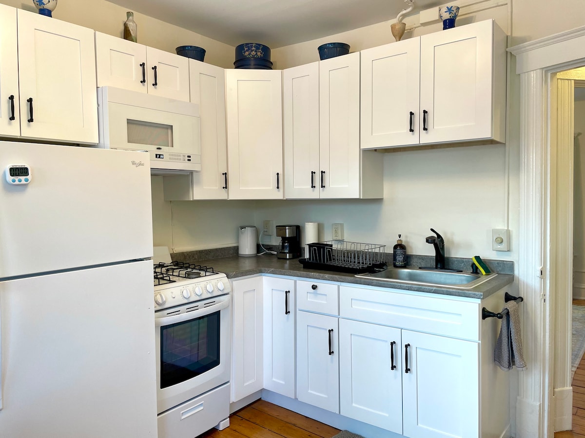 Ezantsi kwedolophu iBurlington! Iflethi enegumbi lokulala eliyi-1 elungiswe ngokupheleleyo kwindlu enembali ka-1845. Ikhitshi elitsha. umgangatho ovulekileyo, i-futon etofotofo kakhulu ukuba udinga ibhedi eyongezelelekileyo. Igumbi lokuhlambela elinezinto zale mihla elinebhafu yeenyawo yakudala. Izinto ezinokusetyenziswa ezintsha ezinembali entle: i-wifi enesantya esiphezulu, i-65" tv, imigangatho yamaplanga aqinileyo ngaphandle, i-AC kunye nolawulo lokufudumeza. Imizuzu eyi-7 xa uhamba ngeenyawo usiya kwiCawa St. Kufuphi ne-UVM neChamplain College. Indawo yokupaka engaphandle kwesitrato eyi-1.