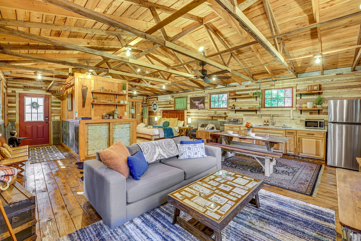 Ifumaneka eBeaver Lake ekwindawo entle yamanzi nezinto ezinokusetyenziswa ezininzi. Yihla uye kwindawo yokubasa umlilo etofotofo. Zipholele kwikhandlela ye-Jacuzzi yabantu ababini (hayi ibhafu enamanzi ashushu) ejonge indawo entle ye-Ozark Mountains. Yithi zava ukuze ulale kwindawo ephezulu enomqamelo, enkulu ngoxa ubuka iinkwenkwezi nemithi phezu kweentambo zeglasi. Yonwabela umgangatho onendawo yokoja yegesi nekhitshi elipheleleyo elinezinto zokucoca. Imali yesilwanyana sasekhaya: $ 50 - inja yokuqala; $ 25 - nganye eyongezelelekileyo. 2 ubuninzi.