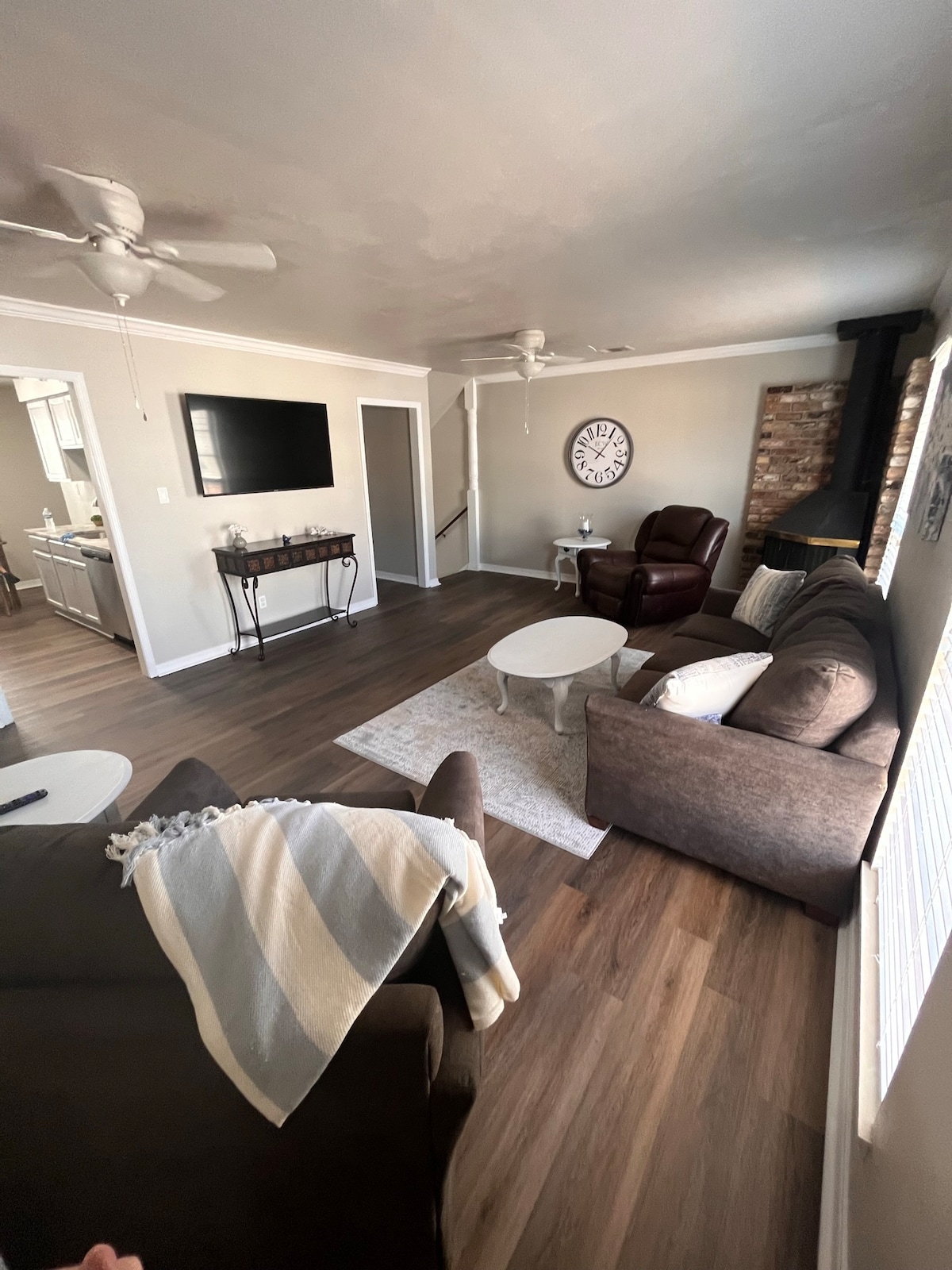 Kick back and relax in this stylish space. This 2 level townhouse has 3 bedrooms and 2 full baths. King Bed in the Master bedroom. The living room is chic! The kitchen is updated and ready for you to cook your favorite meal. Upstairs you have a large bedroom with 2 queen beds and a second full bathroom. Upstairs you also have a dedicated work area and a third bedroom with a full sized bed and a couch to relax. Mins from the interstates! 10 mins from downtown. STR Permit 22-63-STR.