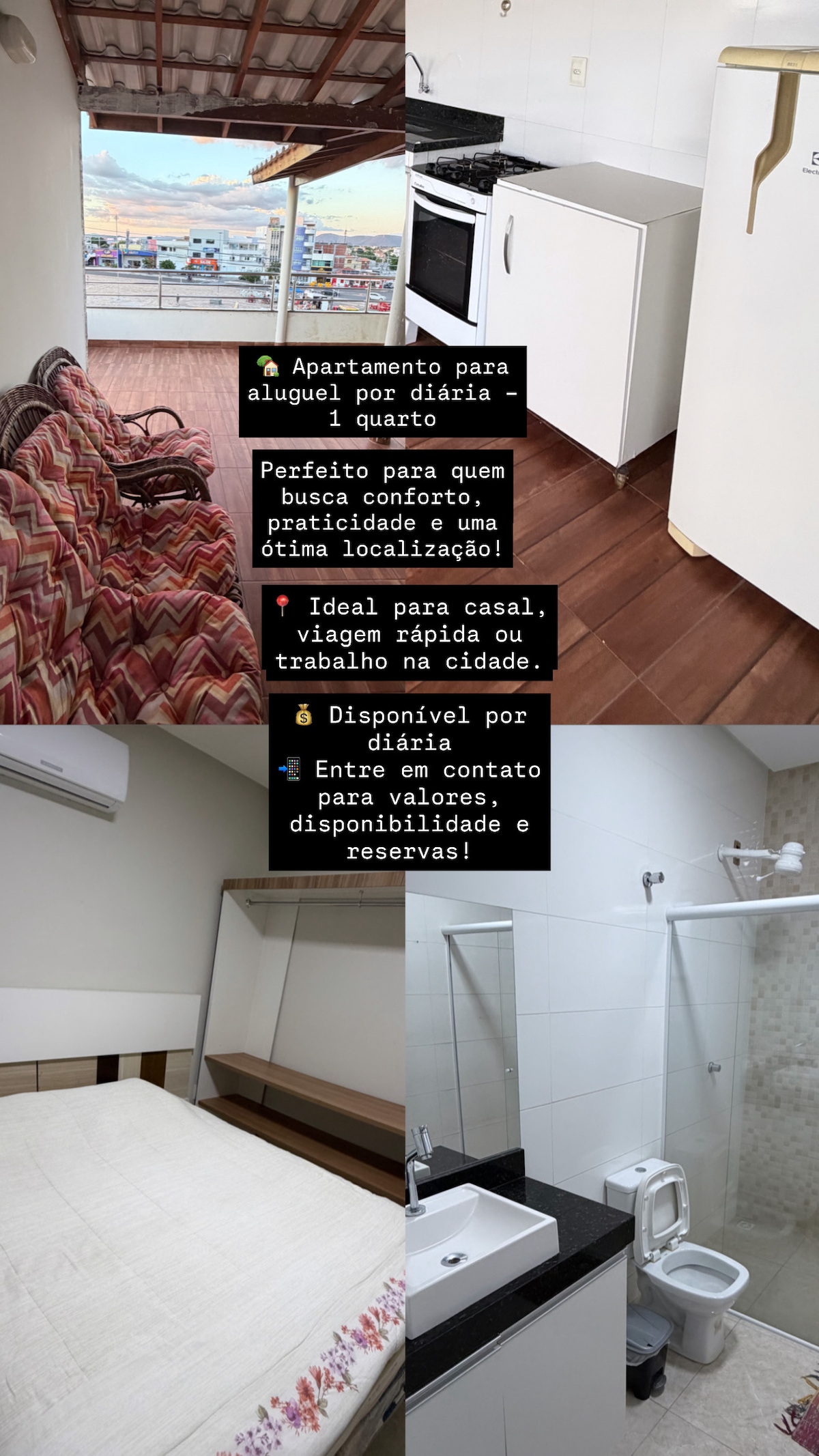 acomodação por noite ou mensal, localização tranquila, próximo a praças, mercados e restaurantes, com 2 quartos sendo uma suíte, sala, cozinha, 1 banheiro social, área de lazer, lavanderia, garagem para 1 carro, toda mobilhada, ar condicionado no quarto casal.