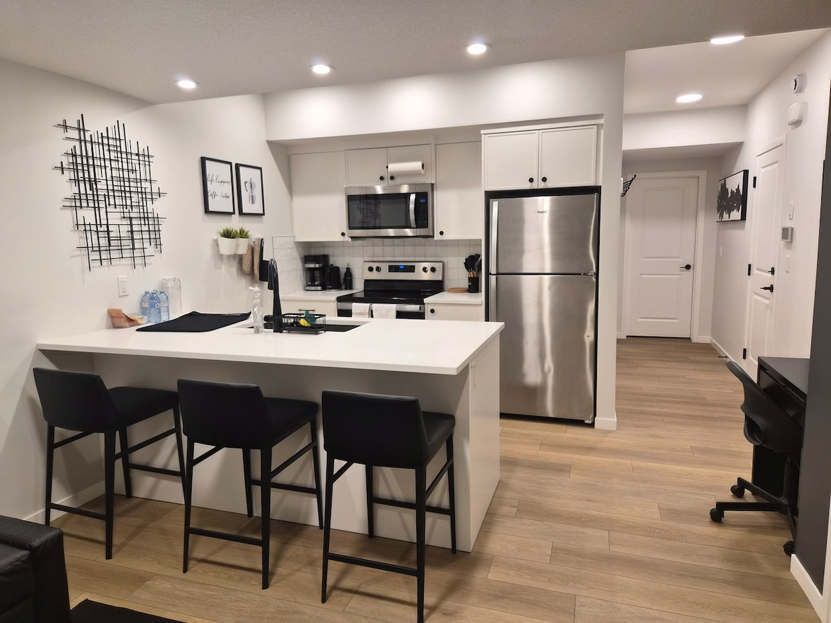 Hlala kwisuite yabucala enamagumbi okulala ayi-2 kwigumbi elingaphantsi kwisakhiwo eNorthwest Calgary, imizuzu eyi-20 ukusuka kwiSikhululo Senqwelo-moya i-YYC naseDowntown Calgary. Ifaneleke ngokugqibeleleyo xa kuza kuhlalwa ixesha elifutshane okanye elide, kuhambo lwezoshishino, okanye kuhambo lwempela-veki, ibe inazo zonke izinto ezintofontofo zasekhaya. Yonwabela isidlo sakusasa esilula, imidlalo yebhodi, nendawo etofotofo, efana nekhaya. 📍 Indawo entle: ikufuphi kwiipaki, kwiindawo zokuthenga, kwiivenkile zokutyela, ibe ikufuphi neStoney Trail ukuze wonwabele intaba neCalgary Stampede. Indawo ethe cwaka, etofotofo onokuhlala kuyo ukuze ubuke iCalgary, iRockies, nezinye iindawo.