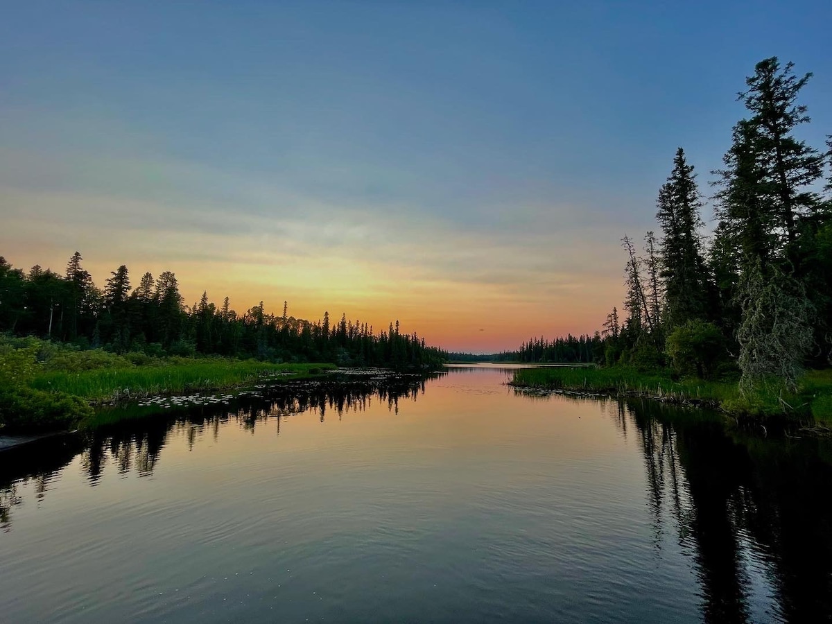 Beautiful, 1 bedroom suite on a 14 acre lakefront, boutique resort on Lake Manitou. Gorgeous lake view. Centrally located, the perfect retreat to sight see our magical island. Peaceful and serene, Green Bay Lodge is nature at it's best. Perfect for outdoor adventures! Fish, swim, canoe, hike, snowmobile, ice fish, snow shoe, cross country ski and star gaze to your hearts content. Relax and enjoy a drink by the outdoor campfire.