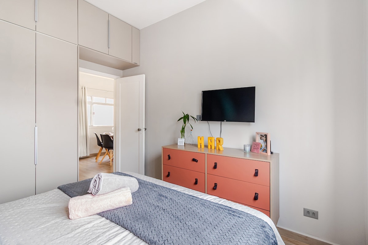 Dlulisa Iintsuku Ezikhethekileyo nentsapho yakho kule flethi kwimizuzu eyi-4 uhamba ngeenyawo usuka elwandle! Kukho amagumbi amahle ayi-2 anegumbi lokulala elinekhabhathi. Umatshini okhupha umoya obandayo okanye oshushu wefestile ofakwe kumagumbi amabini okulala nakwigumbi lokuhlala. Ikhitshi Lixhotyiswe ngeoveni/isitovu, i-microwave, umatshini wokuhlamba izitya, umatshini wokwenza ikofu waseNespresso kunye nazo zonke izinto zasekhitshini, isihluzi nefriji. I-terrace eninzi (enomnatha wokhuseleko) ejonge indawo yokuzonwabisa (ipuli). Iivenkile zokubhaka ezikufutshane, iivenkile zokutyela, iivenkile zezilwanyana zasekhaya, iikhemesti nevenkile ye-ice cream!