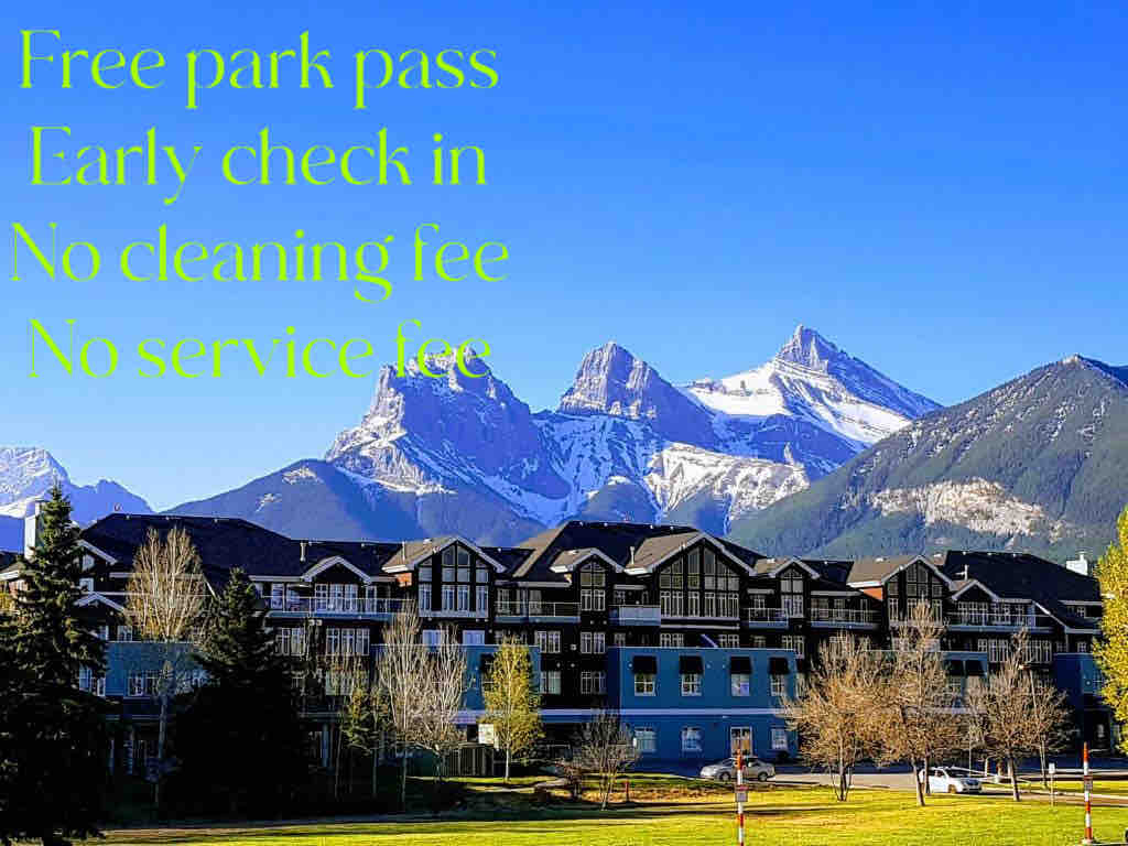 Le ndawo ikumgangatho ophezulu inefenitshala enkulu enamagumbi okulala ayi-1 yindawo entle onokuyonwabela yaseCanada Rockies. - 8 min Drive ukuya Canmore - Imizuzu eyi-25 ukuya eBanff - Imizuzu engama-30 ukuya eKananaskis Village - Free Banff Park Pass - Mahhala High Speed Wi-Fi & Cable - Ibhalkhoni yabucala esekela kwindawo eninzi enemibono yentaba yePigeon - Igumbi lokuhlala elinendawo yomlilo etofotofo nesofa entle enokutshintshwa lula ibe yibhedi eyiKumkanikazi etofotofo - Ukufikelela ngokupheleleyo kwizinto ezinokusetyenziswa zeresort ezisetyenziswa nangabanye abantu ezifana neeBhafu ezinamanzi ashushu nee-BBQ