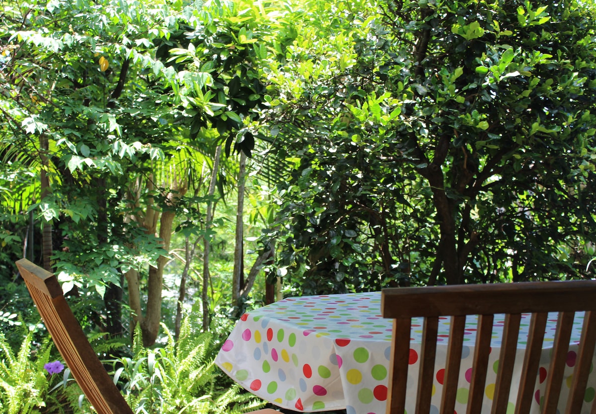 Isitudiyo esizimeleyo esisegadini yethu esine-terrace entle yabucala ebonakala elwandle. Isitudiyo esihle esinezinto zonke, esinomatshini okhupha umoya obandayo okanye oshushu esine-wifi ejonge ipuli negadi yamaplanga ekwindawo ephakamileyo yaseSaint-Denis, eCamellias Hill kwimizuzu eyi-10 ukusuka kumbindi wesixeko neekhilomitha eziyi-10 ukusuka kwisikhululo seenqwelo-moya. Igumbi lokulala le-mezzanine elinokuphakama kwesilingi esezantsi (1M30) lenza kubonakale ngathi kukho i-cocooning. Ungakwazi ukungena simahla kwipuli yethu yokuqubha (engafudunyezwanga) kunye ne-sunbathing yayo kunye negadi yonke.
