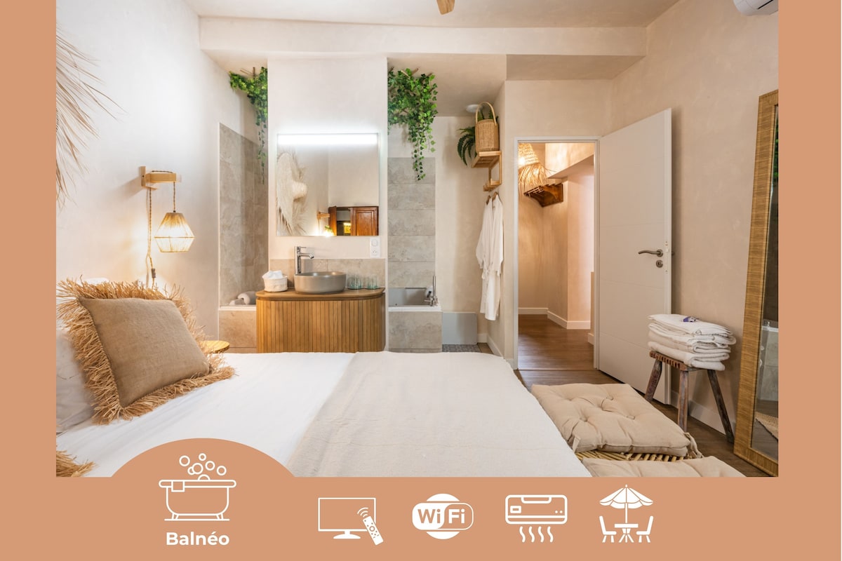 Cofa umnyango weBali Suite uze ufumane indawo yokusabela apho zonke iinkcukacha zikumema ukuba uhambe uze uphole. Le dilesi ikhethekileyo ikumbindi wembali waseCarpentras, kufutshane neevenkile neevenkile zokutyela, ikhuthazwa ziindawo endihlala kuzo eIndonesia, ingakumbi eBali, ukuze ibe noxolo nengaqhelekanga. Izinto ezimbalwa zokuhombisa nefenitshala, ezibuyiswe okanye ezikhuthazwa bubugcisa baseBalinese, zibonisa indawo ngezinto ezichanileyo nezifudumeleyo.