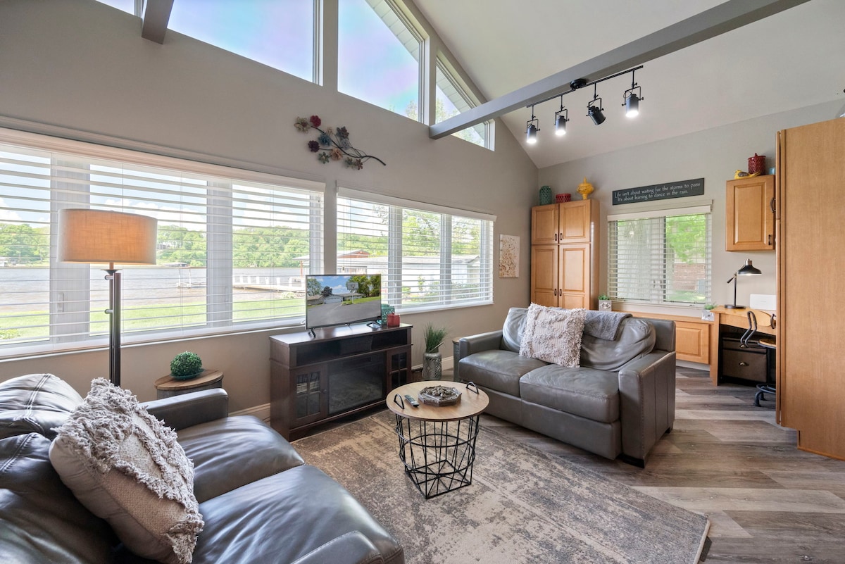 Vula kwaye ukhanyiselwe ukuzonwabisa nokuphumla. 2 indawo yokupaka yabucala yemoto ecaleni ngqo. Songa ujikeleze iveranda kunye negadi ukuze wonwabise, ukugaya, kunye nencoko. Ikhitshi elikhulu (ukuhlala 4), indawo yokutyela (ukuhlala 8) kunye ne-parlor yokuzonwabisa (ukuhlala abantu abayi-6). Igumbi lokuhlala/ leTV kunye ne-Apple TV ukubukela I-NETFLIX kunye ne-TV(akukho ntambo). Iidesika ezininzi zomsebenzi w/ indawo yokufunda nokuphumla eofisini kunye negumbi lokulala elikhulu. Amagumbi okulala amakhulu w/ akhiwe kwindawo yokugcina / kwiikhabhathi. Iishawa namagumbi okuhlambela w/ iitawuli / amalungiselelo kwigumbi ngalinye.
