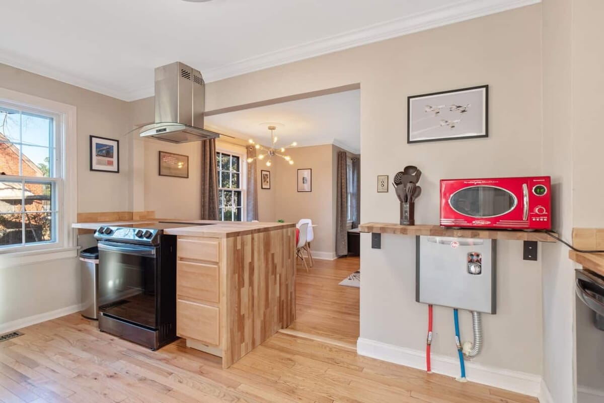 This newly designed modern tiny home perfectly blends style and function, offering a sleek escape with all the essentials. Enjoy the walkability and access the property provides. 🌳 0.2 miles to Chavis Park 🚶 1 mile to Raleigh Convention Ctr 🎤 1.1 miles to Red Hat Amphitheater 🏫 3.5 miles to NC State 🎤 4.4 miles to Walnut Creek Pavillion 🏟️ 8.4 miles to PNC Arena ✈️ 16 miles to RDU **Also, if traveling to Raleigh to look for a home to buy, your stay could be FREE Contact us for details!**