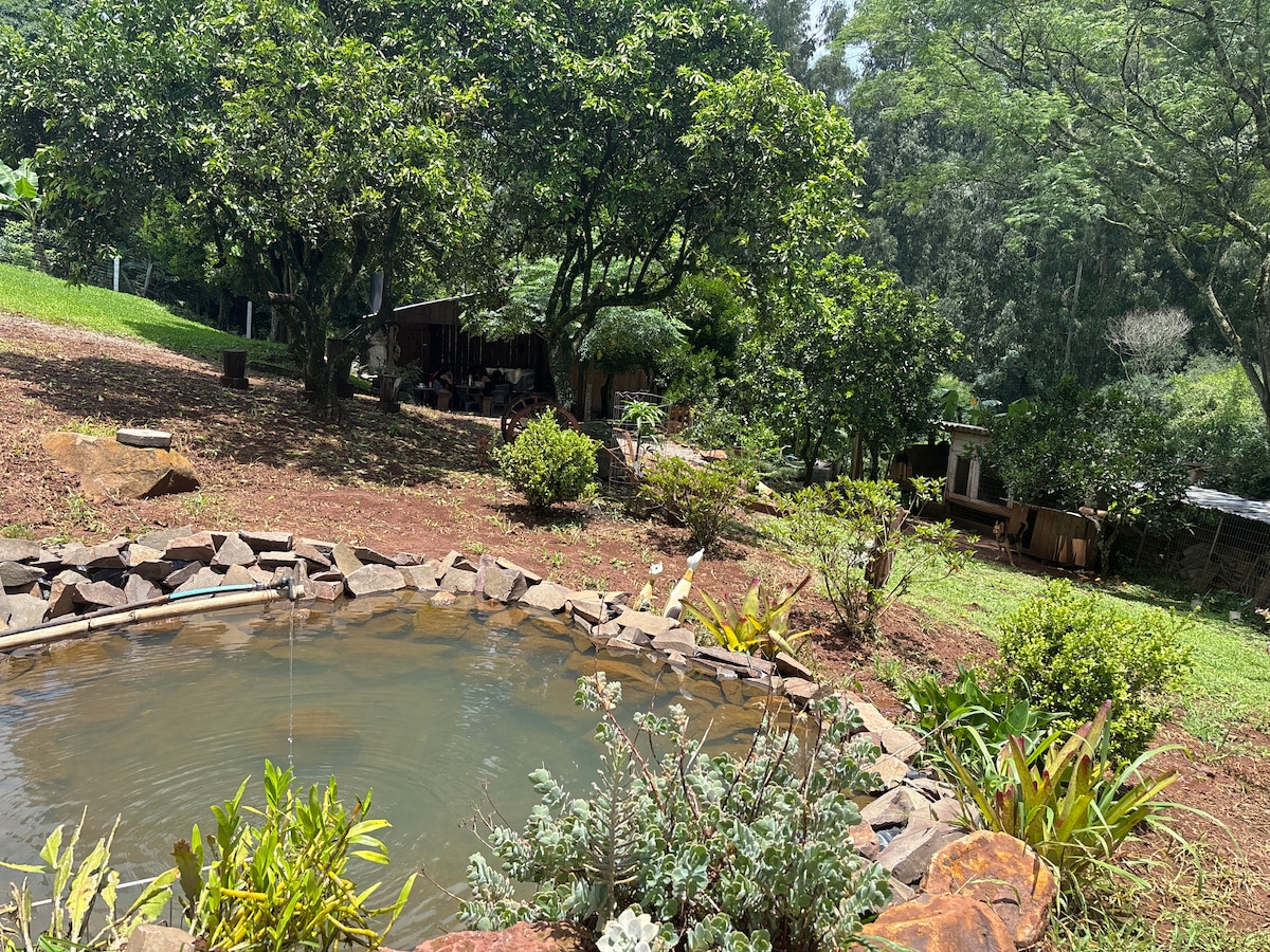 Ifumaneka eCounty of Prata, ngaphakathi eNova Prata, iToca da Araucária sisakhiwo esingaphantsi komhlaba, esenziwe ngezandla yintsapho. Yindawo yokuqala YOKUZIFIHLA EBRAZIL! Le ndlu inabantu abadala abayi-2 nomntwana omnye (kwigumbi elinye, ibhedi elala abantu ababini nebhedi yesofa eyi-1.5M), igumbi lokuhlambela labucala nekhitshi elinebhari encinci, isitovu, i-microwave nezitya. Inomatshini okhupha umoya obandayo okanye oshushu, ukufudumeza amanzi negesi kunye nokukonekta kwe-Wi-Fi. Izinto zebhedi nebhafu ziyafumaneka.