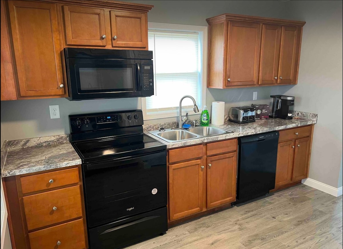 Uza kuba kufutshane nayo yonke into e-Elizabethtown xa uhlala kule ndawo isandul 'ukulungiswa, esembindini kunye nezinto eziphambili ze-Aviation. Izinto ezinokusetyenziswa ezikhethekileyo ngokungafaniyo nakweyiphi na into enokonwatyelwa Iquka: 1Gb Fibre eneWiFi, i-55"QLED TV, i-Nest Thermostat kunye ne-Nest Smoke & Carbon Monoxide, i-LoveSac Sactional, i-Keurig D-Duo Coffee, i-Walker Edison Iibhedi ezinomatrasi wezinto zonyango. Indawo Yokuhlamba Iimpahla Epheleleyo, Neebhayisekile Zokuzilolonga Ezinamavili, i-Weber Natural Gas Grill nendawo Yokuhlala Yangaphandle. Kuqukwe Indawo Yokuhlamba Iimpahla