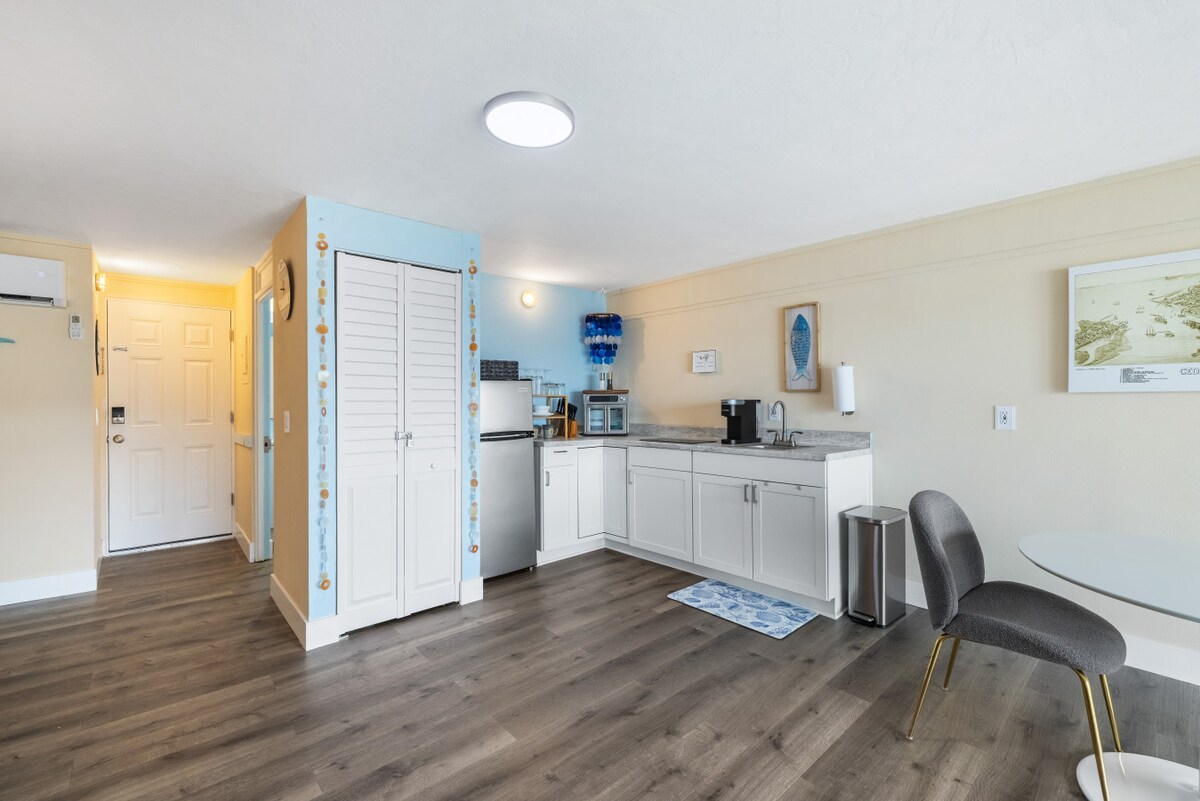 Wamkelekile kwisiqwenga sethu esincinci sezulu laseOld Florida! Le flethi yomgangatho wokuqala elungiswe ngokupheleleyo inekhitshi elinento yonke elinefriji, umphezulu wesitovu ne-microwave. Indawo yegumbi lokuhlala iquka iibhedi ezinkulu eziyi-2 nesofa yokulala. Yonwabela iTV yee-intshi eziyi-65 okanye uphole kwiveranda ubuka ipaki yesixeko, ulwandle neGulf of America. Yiya kwiivenkile zezipho, kwiivenkile zokutyela uze uqiniseke ukuba uza nentonga yakho yokuloba ukuze wonwabele zonke iindawo zethu zaseziqithini!