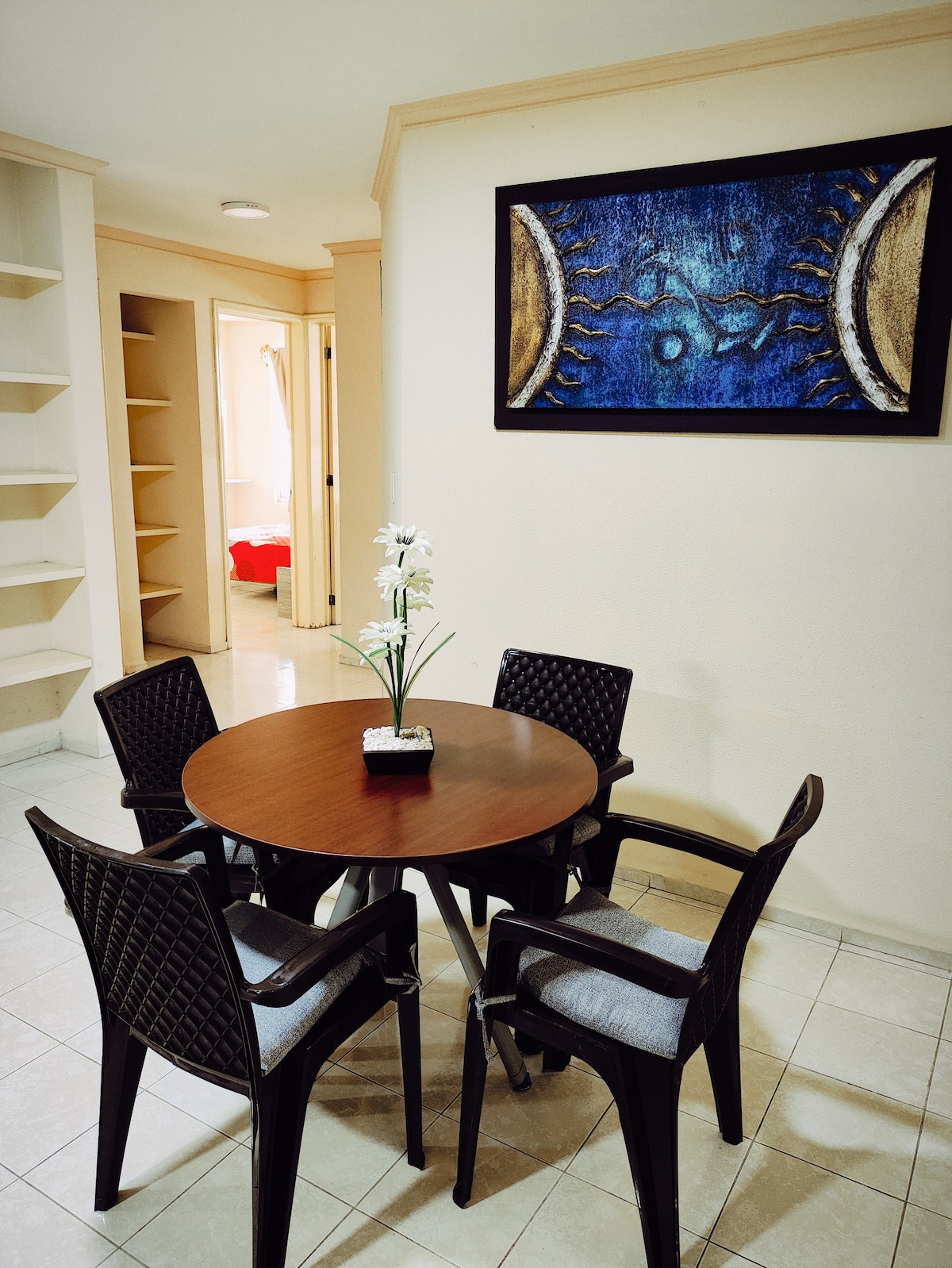 Yonwabela ukuba lula kweli khaya lithe cwaka, liphakathi nelinombulelo. Inamagumbi okulala ayi-3, iibhedi ezimbini eziyi-2 neebhedi ezimbini. Izikrini eziyi-2, i-intanethi, ikhitshi elinezinto ezifunekayo, amanzi ashushu emini nasebusuku nayo yonke into elungele ukuhlala kwakho. Yeyakho wedwa, enendawo yokupaka yeemoto eziyi-2. indawo ekhuselekileyo, Ecaleni kweNorponiente Axis, kufutshane neeNkundla Zoluntu kunye neNkundla Yerhafu, iSAT, iPJF, iindawo zoshishino., iiplaza zoshishino, izibhedlele, iklabhu yegalufa, njl.
