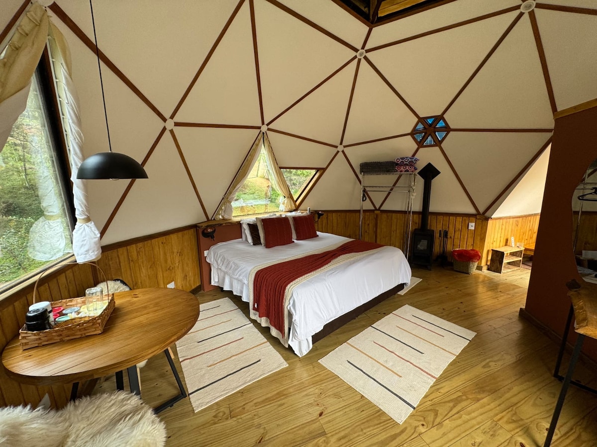 Wamkelekile kule Dome intle eyenziwe ngendlela ecingwe kakuhle ukuze inike abantu abahlala kuyo iholide enoxolo nenothando. Ifumaneka ecaleni kwenduli, inendawo entle yokubuka ichibi neentaba. I-Dome ineefestile ezinkulu ezimema ukukhanya kwendalo ukukhanyisa indalo. Ihonjiswe ngendlela ethambileyo nehonjiswe kakuhle, inebhedi yobunewunewu eyiKumkanikazi, enebhafu enamanzi ashushu evulekileyo, kwaye idekhi enkulu ephandle yindawo efanelekileyo yokutya izidlo zothando zokutshona kwelanga.