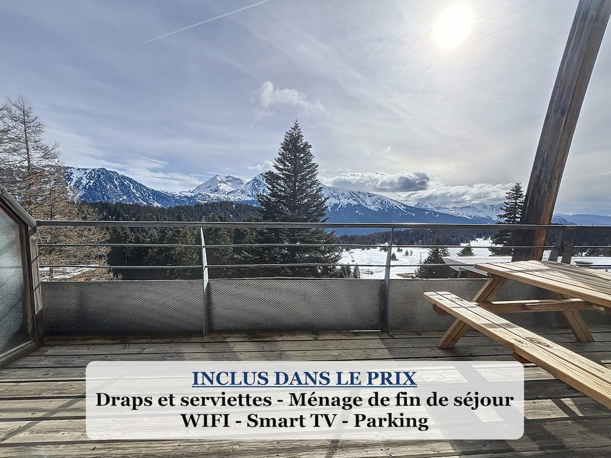 I-Studio 28 m2 ejonge kumathambeka, ukutyibilika ekhephini. I-ESF,i-ski lift, iivenkile ezikufuphi. Le flethi ixhotyiswe ngokupheleleyo:i-WiFi, i-TV enkulu, i-hi-fi, i-DVD player, i-raclette kunye nezixhobo zombane ze-fondue, senseo,umatshini wokuhlamba izitya, ioveni encinci, iketile ye-microwave, i-toaster. Iimveliso zasekhaya,ioyile, iviniga, iswekile, ityuwa, ipepile, ziyafumaneka. Amashiti anokuqeshiswa: i-euro eyi-10 umntu ngamnye. Isithuthi simahla esiya kwiresort ehlotyeni, ngexesha lasebusika:yima i-50 m kude . idipozithi: i-euro eziyi-100
