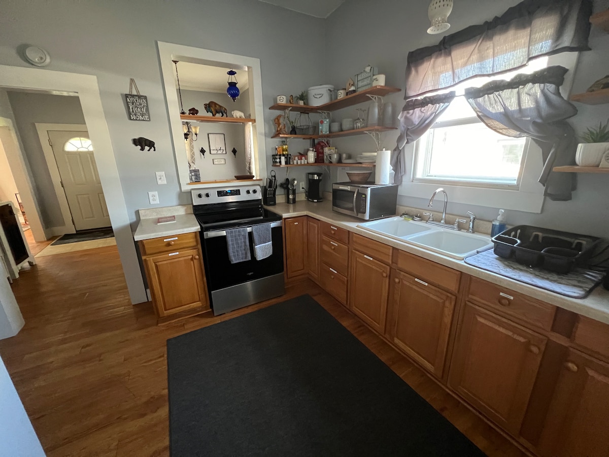 Yiba kufutshane kwinto yonke - kube lula ukuvala isitrato esiyi-1 - nto leyo eyenza kube lula ukuceba uhambo lwakho. Ikhaya lethu eliphucukileyo lisebenze kakuhle lineplani evulekileyo ukusuka kwindawo yokutyela nendawo yokutyela nekofu eneKuerig, kwikhitshi elikumgangatho ophezulu ukuya kwigumbi lokuhlala elinee-roku tvs neebhedi ezinkulu ezitofotofo kwigumbi ngalinye, i-wifi, umatshini wokuhlamba impahla/wokomisa impahla, indawo ebiyelweyo ebiyelweyo enomngxuma womlilo - Umqhubi weNdlela ugcwele zonke izinto ezinokusetyenziswa ekhayeni lakho. Uziva wedwa kwikhaya elisembindini.