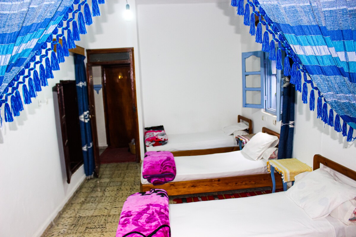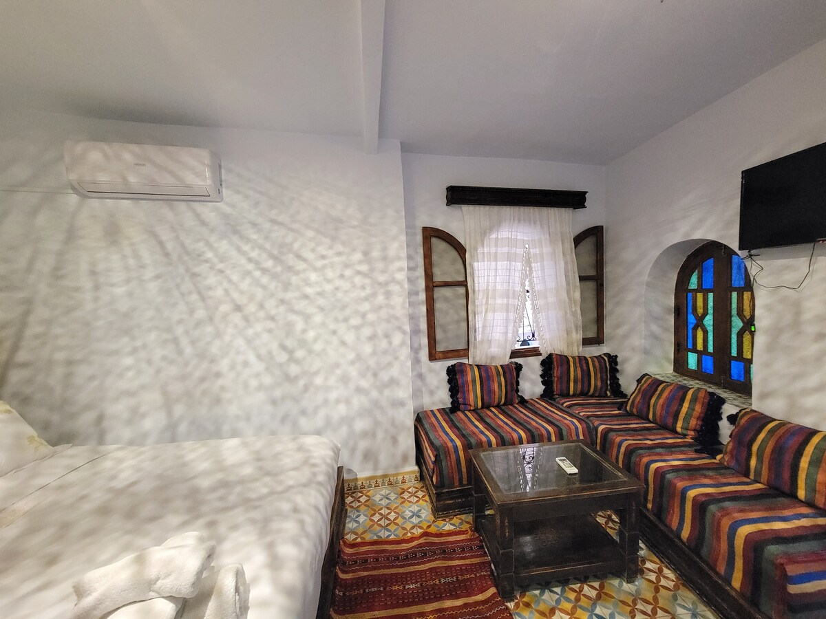 I-Dar Qaysar yindawo etofotofo ekuthiwa yi-Riad phakathi komxube omnandi wesintu nomxube wale mihla, elungele ukuhlala nosapho okanye abahlobo (abantu abadala abayi-6). Ime embindini we-medina, kufutshane ne-Bab Souk Mosque, indawo "yoxolo" eza kukuhamba nawe ngexesha lokuhlala kwakho eChefchaouen 🙏🏻 (Indlu ekhuselekileyo, enekhamera) ⚠ Unamaxabiso ayi-2: Ukhetho lokuqala "ukurhoxisa okungabuyiselwa mali" ngesaphulelo se-10%. Ukhetho lwesibini "lokurhoxisa okubhetyebhetye" lubuyiselwa kwiiyure eziyi-24 ngaphambi, ngaphandle kwesaphulelo ⚠