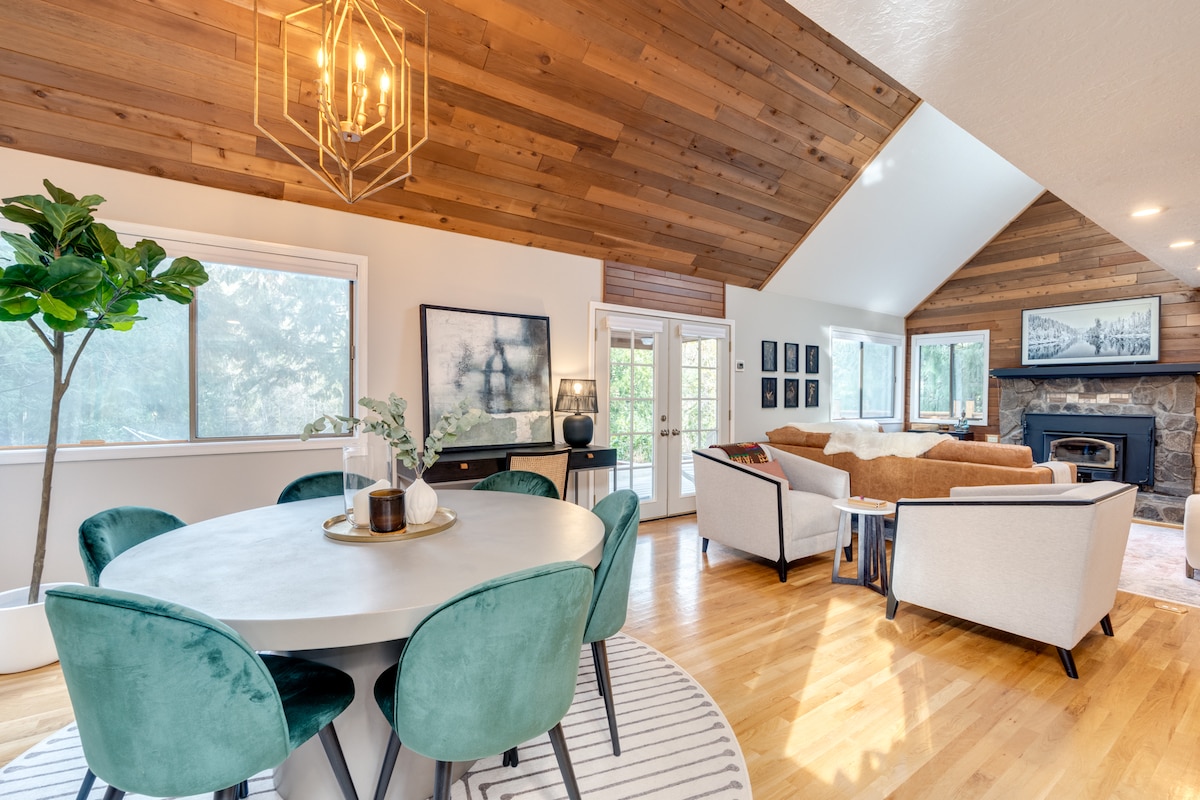 I-Alpine Den ilungele zonke izihlandlo, ukususela kwiholide yothando ukuya kwiholide yentsapho. Ifumaneka kwihlathi elidala elikufutshane noMlambo iSalmon, ephantsi kweFirs neCedars. Le ndlu yamaplanga ihleli kwindawo entle ye-acre eninzi, ikumgama wemizuzu ukusuka kwiivenkile zokutyela ezinkulu, iimarike, igalufa, ukuhamba ngebhayisekile kunye neendlela ezimangalisayo zokunyuka intaba. Yimizuzu eyi-20 kuphela ukuya kwi-Ski Bowl, nemizuzu eyi-30 ukuya kwi-Timberline ne-Mt Hood Meadows. Siyakuthanda ukwabelana ngendlu yethu yamaplanga ukuze abanye bonwabele ukuzola kwehlathi. IG: @thealpineden