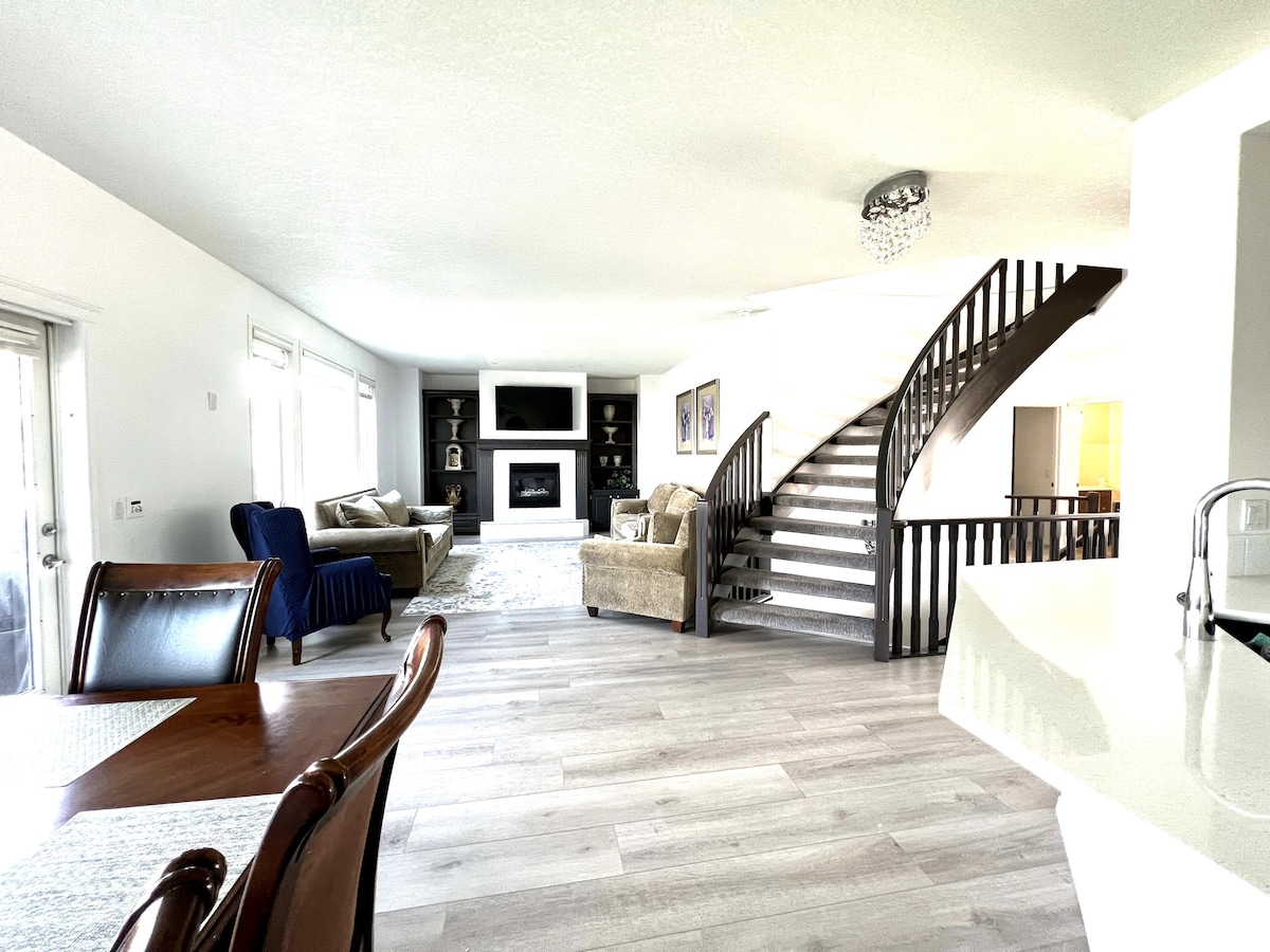 Wamkelekile eChestermere Lake Oasis. Ngaphakathi, uza kufumana amagumbi okulala amathandathu (amahlanu aneebhedi ezinkulu), amagumbi okuhlambela ayi-3.5 namakhitshi amabini anento yonke. Ihonjiswe ngefenitshala yale mihla. Indawo yethu ngokuqinisekileyo iza kukwenza ube nomtsalane. Ngaphandle, ungaphumla kumgangatho wethu omkhulu kunye neendawo ezintle zomlambo kunye nohlaza oluhle. Indawo yethu ikumgama wemizuzu eyi-25 xa uhamba ngemoto usuka eDowntown Calgary naseSikhululo Seenqwelo-moya, yimizuzu eyi-5 ukuya kweyi-10 xa uhamba ngemoto usuka kwiivenkile nakwiivenkile zokutyela, ibe ikumgama omfutshane xa uhamba ngeenyawo usuka kwibala legalufa nakwichibi.