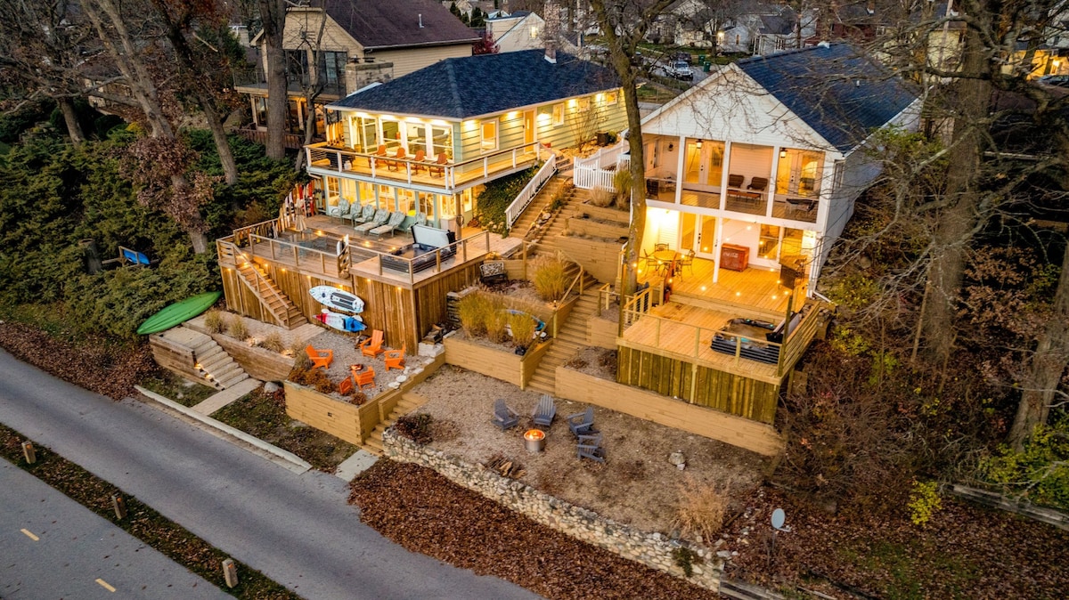 Indlu yeholide eyakhiwe ngamaplanga ethokomele ngeLake MI&Dunes kunye ne-Fire Pit