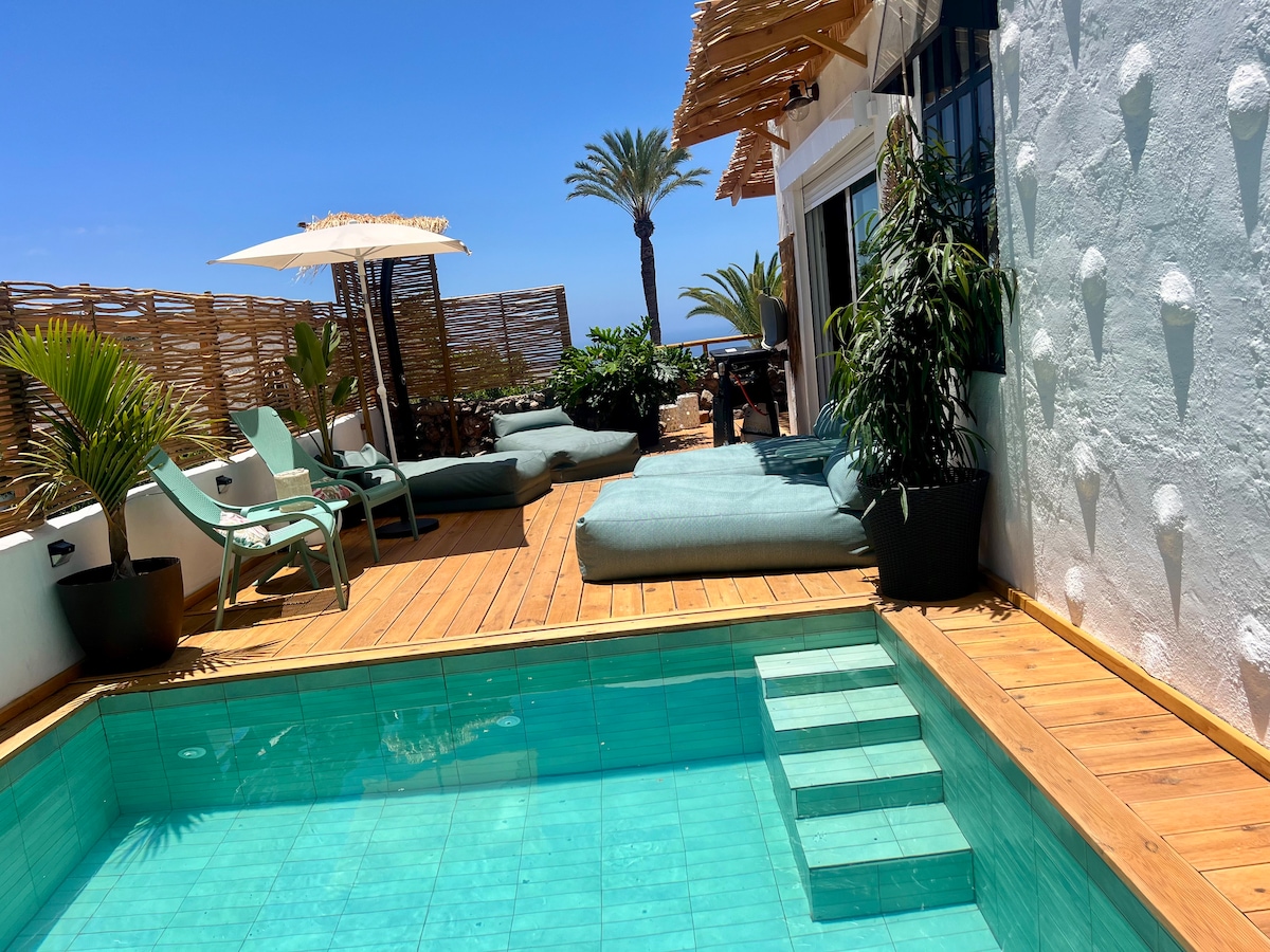 @sleephousetenerife Indlu entle yohlobo lweCanarian enamagumbi amabini asandul 'ukulungiswa eneveranda enkulu nepuli yokuqubha ene-solarium nendawo epholileyo. Le ndlu ikwindawo ethe cwaka enomoya wasemaphandleni kodwa ekumgama wemizuzu eyi-15 kuphela ukusuka elwandle. Le ndlu iphezulu endulini ibe ibonakala intle kwaye icocekile ijonge elwandle. Ukutshona kwelanga kuhle kakhulu kuba isiqithi saseLa Gomera singasemva.