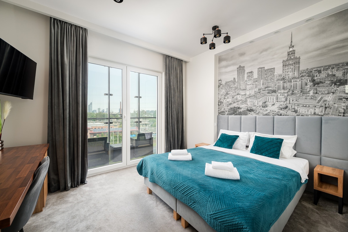 An exceptional apartment located on the 21st floor of a modern building at Kasprzaka 29 street. Ideal offer for those who appreciate comfort and proximity to the city centre and key business points. ⋆Spacious living room with sofa, desk and smart TV ⋆Fully equipped kitchenette (hob, microwave, dishwasher, coffee machine) ⋆Bedroom with comfortable, double bed ⋆Stylish bathroom with shower and washing machine ⋆Central air-conditioning ⋆Balcony with beautiful view of the city ⋆Underground garage