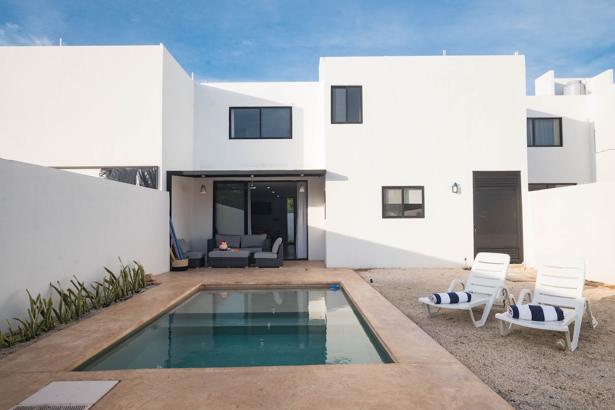 Indawo yale mihla nehonjiswe kakuhle kwintsapho ekhuselekileyo emini nasebusuku - ilungele ukusebenzela ekhaya okanye iholide. Amagumbi amabini okulala (uKing + Queen), ngalinye linegumbi lokuhlambela labucala, ikhitshi elinento yonke, indawo yokusebenzela, ipuli yabucala, indawo yokubraya enomthunzi nendawo yokupaka. Ifumaneka kwindawo ethe cwaka nekhuselekileyo kwimizuzu nje eyi-5 ukusuka ePeriférico nemizuzu eyi-25 ukusuka edolophini iMérida. Indawo etofotofo nesebenzayo kumntla wesixeko.