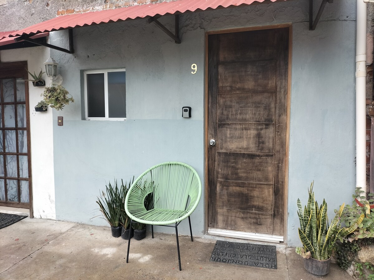 Es una habitación doble equipada como un departamento. En un estilo rústico acogedor con linda vista a nuestro Jardín :) Cuenta con : 2 camas individuales Armario Mesa con barriletes Cocina completa : parrilla, fregadero, refrigerador y microondas; con utensilios !! Baño completo (Regadera amplia ) Servicios: luz, gas , agua ( agua caliente 24/7), Internet Wifi Para un estancia cómoda y excelentemente ubicada !!!