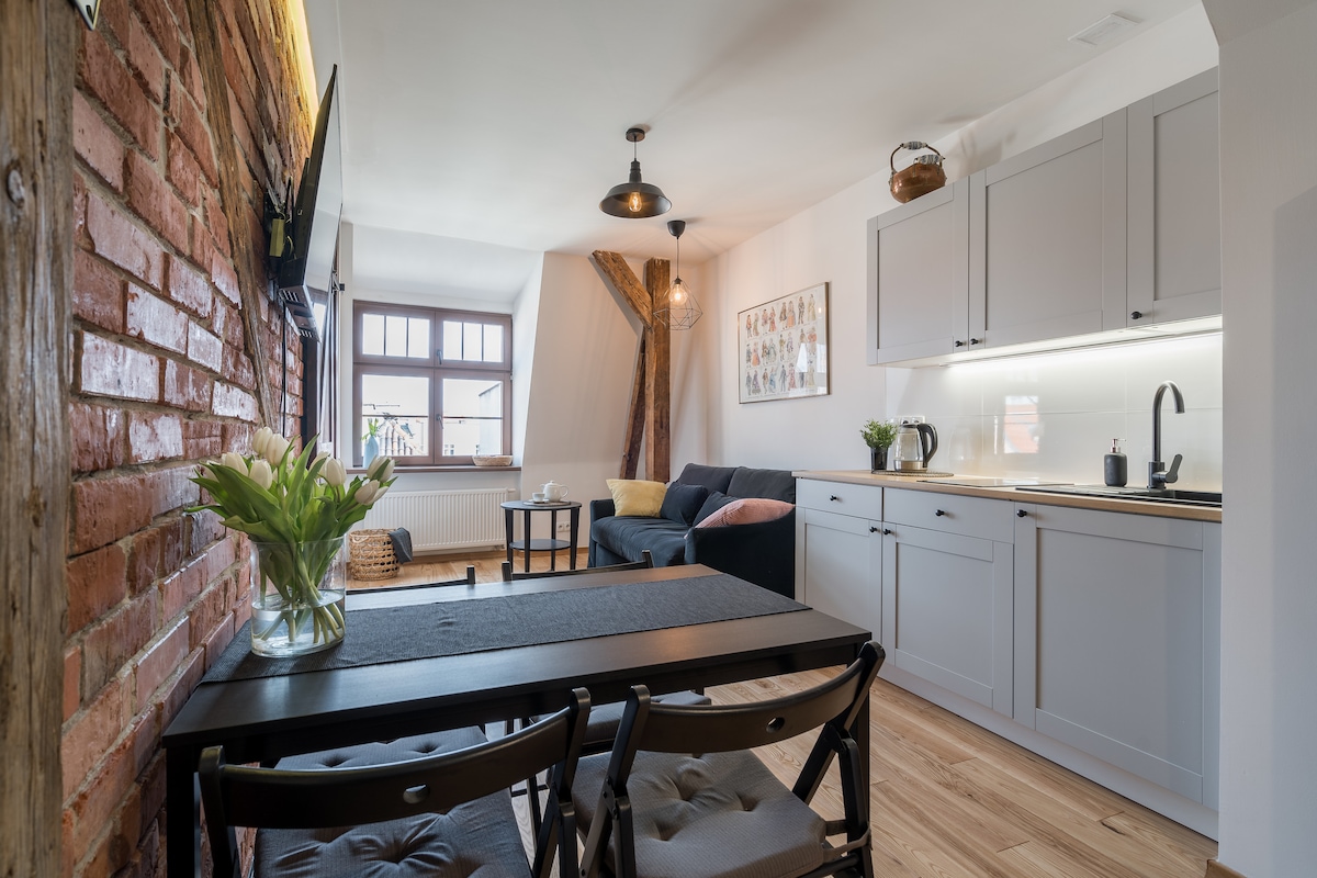 Miejsce w centrum przy ul. Podmurnej – czeka na Ciebie spokój i nowoczesny styl. Doslownie w samym sercu miasta (Most Paulinski, Muzeum Piernika, pomnik M. Kopernika-w odleglosci 100m) , a duże okna z niezakłóconym widokiem dodają przestrzeni. Nowoczesny, urządzony w 2025 roku, w pełni wyposażony. Dużo światła, w pobliży maks. ilości restauracji! Miejsce idealnie skomunikowane z każdą częścią miasta. Klatki po kapitalnym remoncie - prace na schodach jeszcze są na ukończeniu.