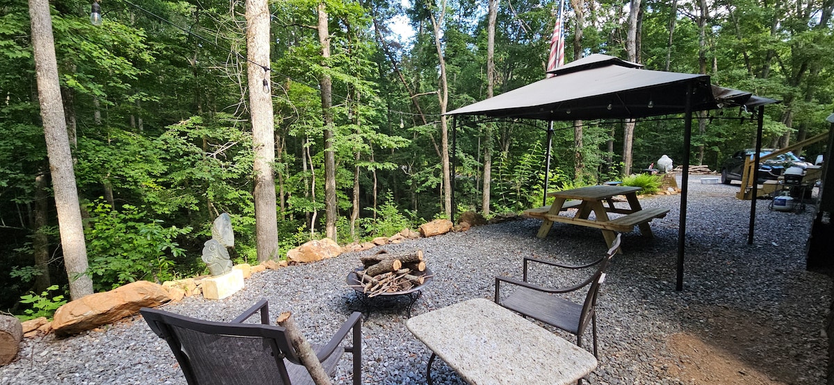 Bona imithetho yezilwanyana zasekhaya. Indlu encinci, eyi-160 square feet kwiinduli zethu eziqengqelekayo zeekhilomitha eziyi-6.5. Yonwabela ukuphumla ngoxolo njengoko ujonge iintaba neefama ezijikelezileyo. Kufuphi neLake Chatuge, i-Ntantahala kunye ne-Chattahoochee National Forest, i-Appalachian Trail, kunye nezinye iindlela ezininzi. Ukunyuka intaba, Ukuhamba ngebhayisekile, ukuhamba ngephenyane, njl. Ukuba uyazithanda iindawo ezingaphandle awusoze uphelelwe zizinto onokuzenza apha. Ngoku ndine-intanethi ye-fiber optic