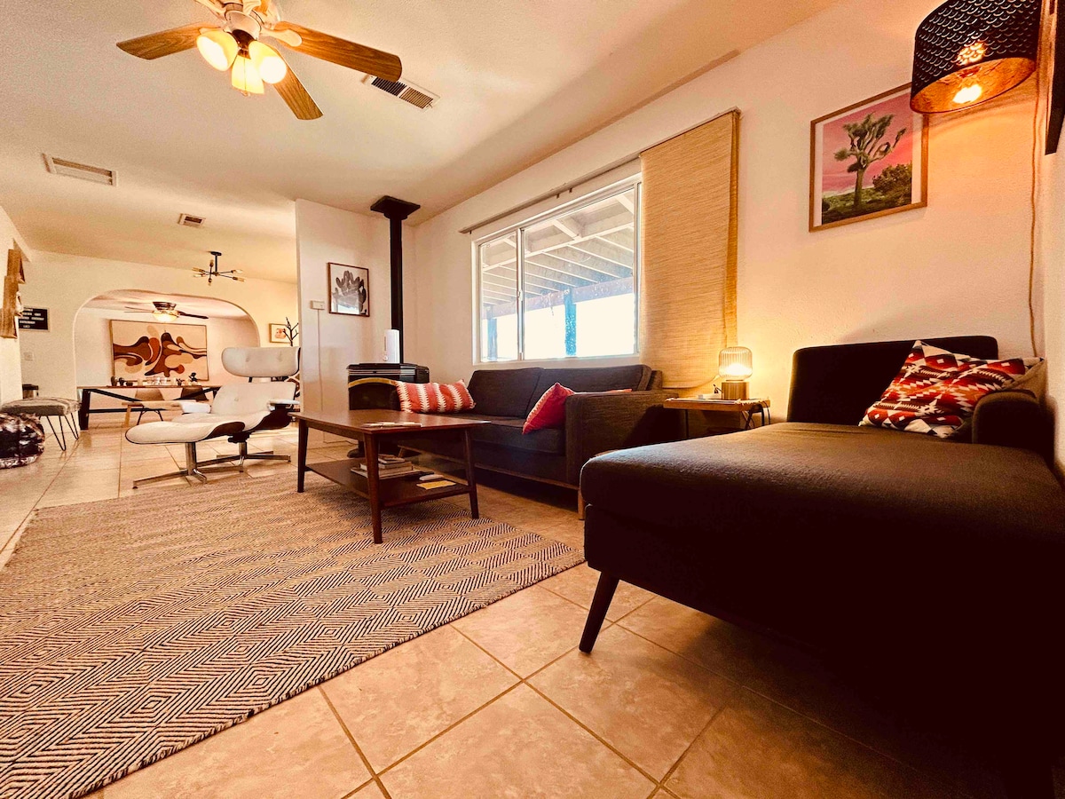 Indlu yamaplanga ekwindawo ekuthiwa yi-homesteader—ilungele izibini ezifuna indawo yokuhlala enothando entlango. Yimizuzu eyi-4 ukusuka kwindawo yokungena entshona yeJoshua Tree National Park nasedolophini. Iphuculwe kutshanje ngokufakwa ibhafu enamanzi ashushu yabantu ababini, indawo yokubasa umlilo, ne-pergola egqunyiweyo enento yokosa inyama yakwaWeber ukuze nibe nesidlo sangokuhlwa esikhethekileyo phantsi kweenkwenkwezi. Ngaphakathi ihlaziyiwe nayo. Ndilindele iifoto ezingakumbi ezifotwe ngumntu ofotayo ukuze ndibonise le ndawo.