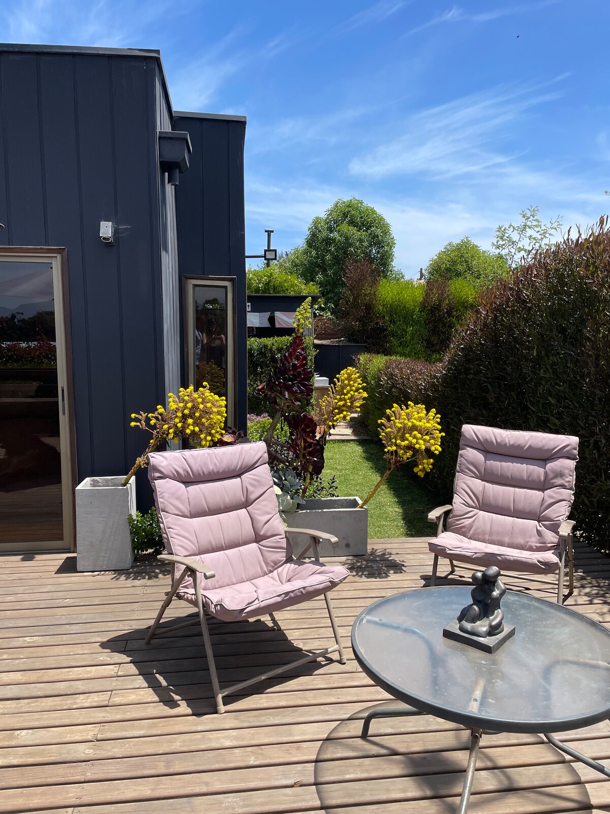Ukuya kwiindlela ezinothuli zedolophana yaseQuintay uza kudibana ne "The Studio.” Ibekwe phezulu eweni kunye neendawo ezijonge uLwandlekazi lwePasifiki, iinduli zaseCurauma kunye neCaleta yaseQuintay. Isitudiyo esondeleyo silala abantu ababini ekhitshini, igumbi lokuhlambela, ibhedi elala abantu ababini, indawo yokuhlala neyokutyela. Amashiti neetawuli ziyafumaneka. Uza kuba nedekhi yakho yabucala ejonge elwandle apho unokutya khona i-alfresco uze ubukele ukutshona kwelanga okumangalisayo.