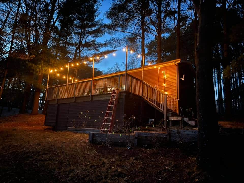 Indlu yethu yamaplanga entle ijonge ichibi elincinci ibe ikwindawo enamahlathi ayi-40; eyona nto iphambili kule ndlu yindlu enomtsalane ephantsi komzila (indawo yethu). Yithi zava ngencwadi entle ecaleni kwesitovu esitshisa iinkuni. Bukela izilwanyana zasendle zasekuhlaleni kwisitulo esijikelezayo kwiveranda egqunyiweyo. Buka iinkwenkwezi ngobusuku obucacileyo. Tyelela imijelo ye-trout ekufutshane, iivenkile zakudala, kunye neendawo zasekuhlaleni, uze ubuyele kule ndawo ilula, ikhethwe kakuhle ehlathini.