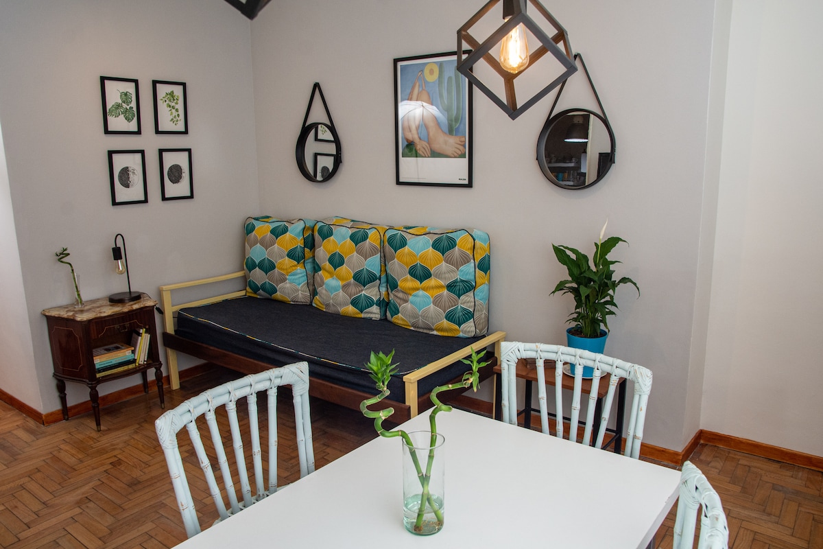 Phola kule ndawo ithuleyo nenomtsalane njengesibini okanye nentsapho yonke. Ukuphumla kakuhle nokwazi iBuenos Aires. Ifumaneka kweyona ndawo intle eBarrio de Caballito, ekufutshane nezona ndawo zibangela umdla esixekweni. Indawo etofotofo nenomtsalane, eza kwenza ukuhlala kwakho eBuenos Aires kube yiholide ongasoze uyilibale ize ikushiyele umnqweno omkhulu wokubuyela kwesi sixeko sihle. 🚗INDAWO YOKUPAKA EBHATALELWAYO ESAKHIWENI👌 “Wonke umntu wamkelekile, ndiyakuhlonipha ukwamkela abantu bonke nokungakhethi”