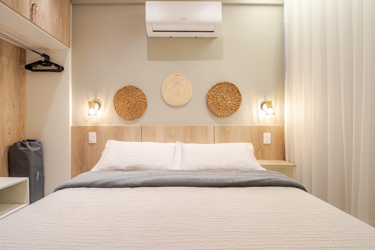 Isitudiyo esinomtsalane nesithuleyo esingu-25m2, esinekhitshi eliphezulu, igumbi lokuhlambela negumbi lokulala, nefestile enomsindo enengxolo engaphandle eyi-95%. Isitudiyo sikrelekrele ngokupheleleyo kwaye siphendula imiyalelo yezwi (i-TV, isandi, iqondo lobushushu kunye nokukhanyisa). Ibekwe embindini wonxweme lwaseCopacabana, indawo yethu ikwayimizuzu nje embalwa uhamba ngeenyawo ukusuka elunxwemeni lwaseIpanema, kwiivenkile ezinkulu, kwisitishi esingaphantsi komhlaba nakwiibhari ezininzi nakwiivenkile zokutyela, ngeyona ndlela intle yaseRio!