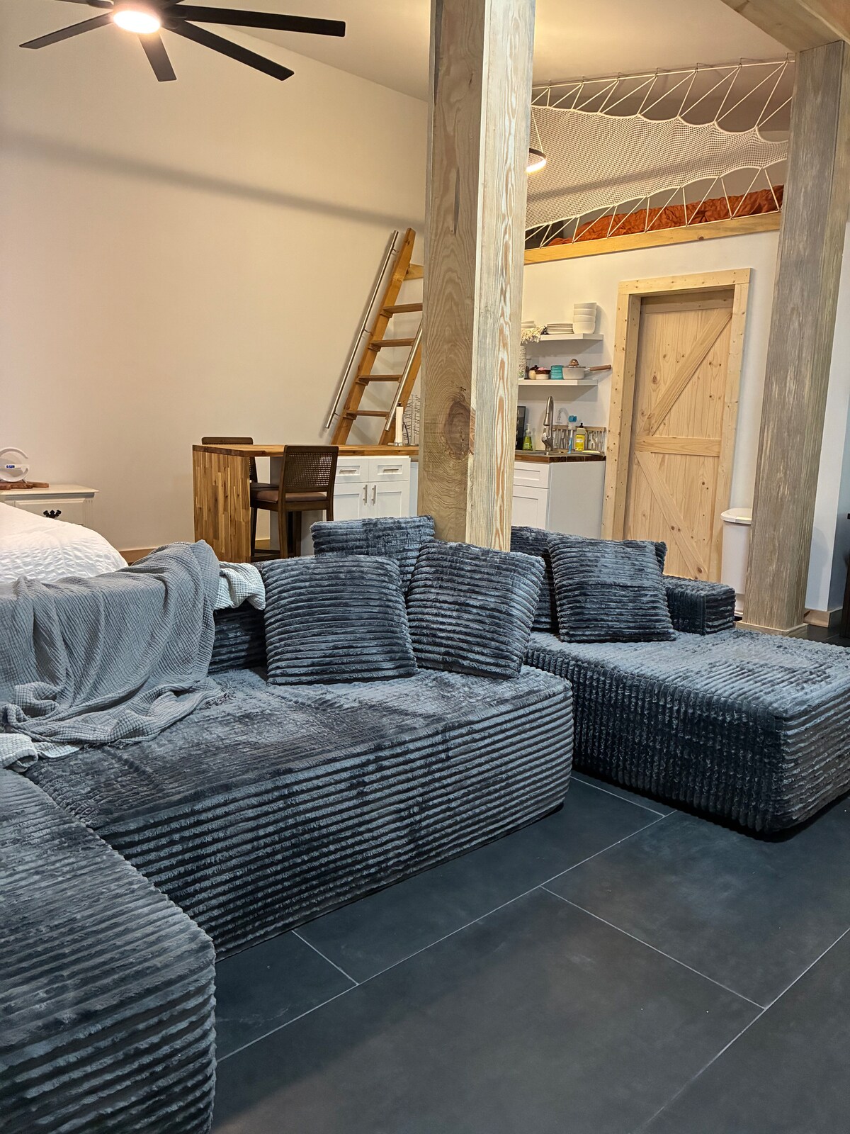 Nestled in the trees, Archimedes’ Nest at the Emu Ranch is the dreamy, romantic escape you’ve been searching for. This custom-built getaway was designed for relaxation and self-indulgence, complete with special amenities to make your stay comfortable and treetop and garden views from every window where you may catch a glimpse of the emu, turkeys, swans, and peafowl roaming below. It's quiet and private, yet walking distance to East Atlanta Village- one of the hottest neighborhoods in Atlanta.
