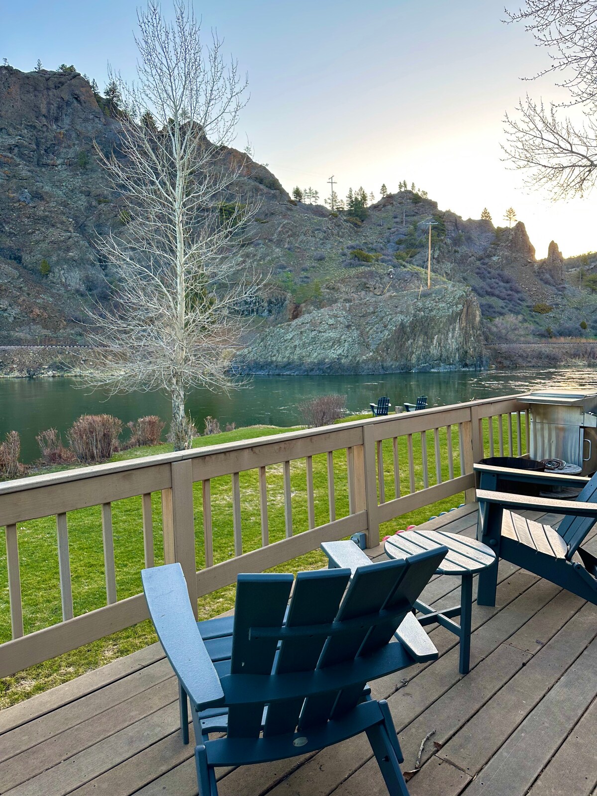 Yonwabela ubumnandi be-canyon kunanini na ngaphambili. Enoba uchitha impela-veki ukuloba, uceba iholide yothando, okanye ukuzonwabisa wedwa, indlu yethu yamaplanga yale mihla inesetingi entle yokwenza iinkumbulo ezihlala zihleli. Le ndawo intsha yebhedi eyi-1/ibhafu eyi-1 isembindini, yimizuzu eyi-30 kuphela ukusuka eGreat Falls naseHelena. Indawo yethu ephambili yenza kube lula ukungena emlanjeni (ngaphantsi kweemayile eziyi-5), nto leyo eqinisekisa ukuba yonke imihla igcwele yimincili kwaye ifunyenwe. Inedekhi eyi-400 sq.ft!