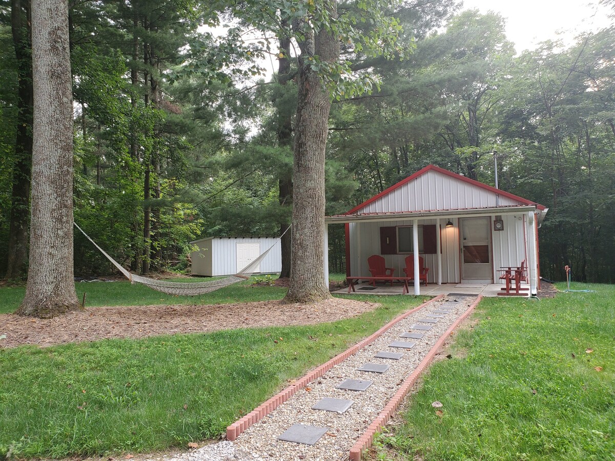 Ngaphezulu kwe-5 acres yokuzola okucocekileyo, isandi nje sendalo esikujikelezileyo! Ichibi elihle laseTucker kunye nomzila wokunyuka intaba ngeenxa zonke. Le paki ifana nomoya inendawo yeentente, ii-RV , izikhephe, amavili ayi-4 nokungakumbi. Ngaphantsi nje kweekhilomitha eziyi-5 ukusuka kwidolophu yaseFransi yaseFransi naseWest Baden Resort, kodwa ifihliwe ngokupheleleyo.Cabin ineeveranda ezimbini ezinee-rocker gliders kunye neendawo zasezulwini. Ukujinga kwe-cedar, itafile yepikiniki, umngxuma womlilo onezitulo ze-adirondack kwii-BBQ zasebusuku. Ipaki yamanzi kunye nokuqeshiswa kwesikhephe, kufutshane