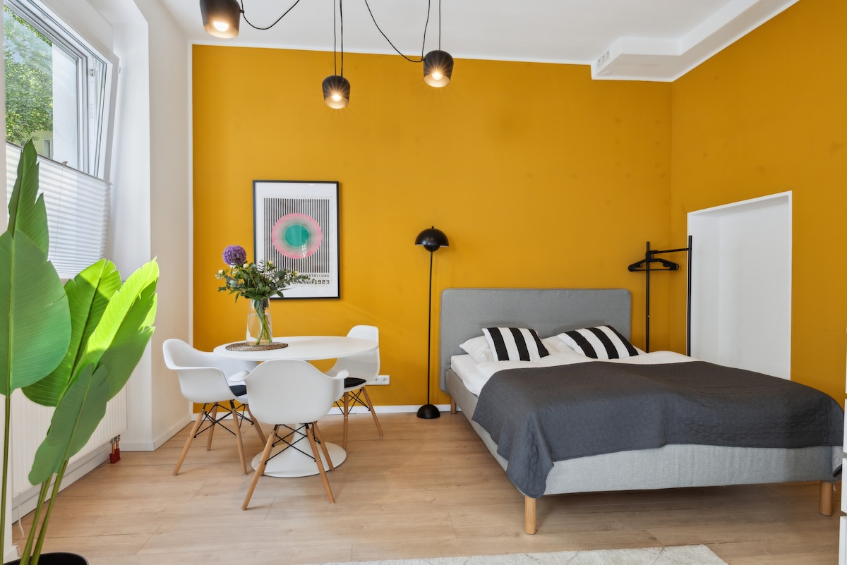 Yonwabela izinto ezihonjiswe kakuhle kule ndawo yokuhlala isembindini weLuisenviertel. Iindawo ezikufutshane, ezineebhari zayo, iikhefi neevenkile zokutyela, yenye yezona ndawo zintle eWuppertal. Ibhedi elala abantu ababini evulekileyo inokufikelelwa ngezitepsi ezincinci (ukuphakama kwesilingi apha kuphela kwi-1.60 m). Ikhitshi line-microwave, isitovu, ifriji nomatshini wekofu. Kukho indawo yokusebenzela kwigumbi lokuhlala, isofa kunye neTV (i-Netflix kuphela - akukho ntambo).
