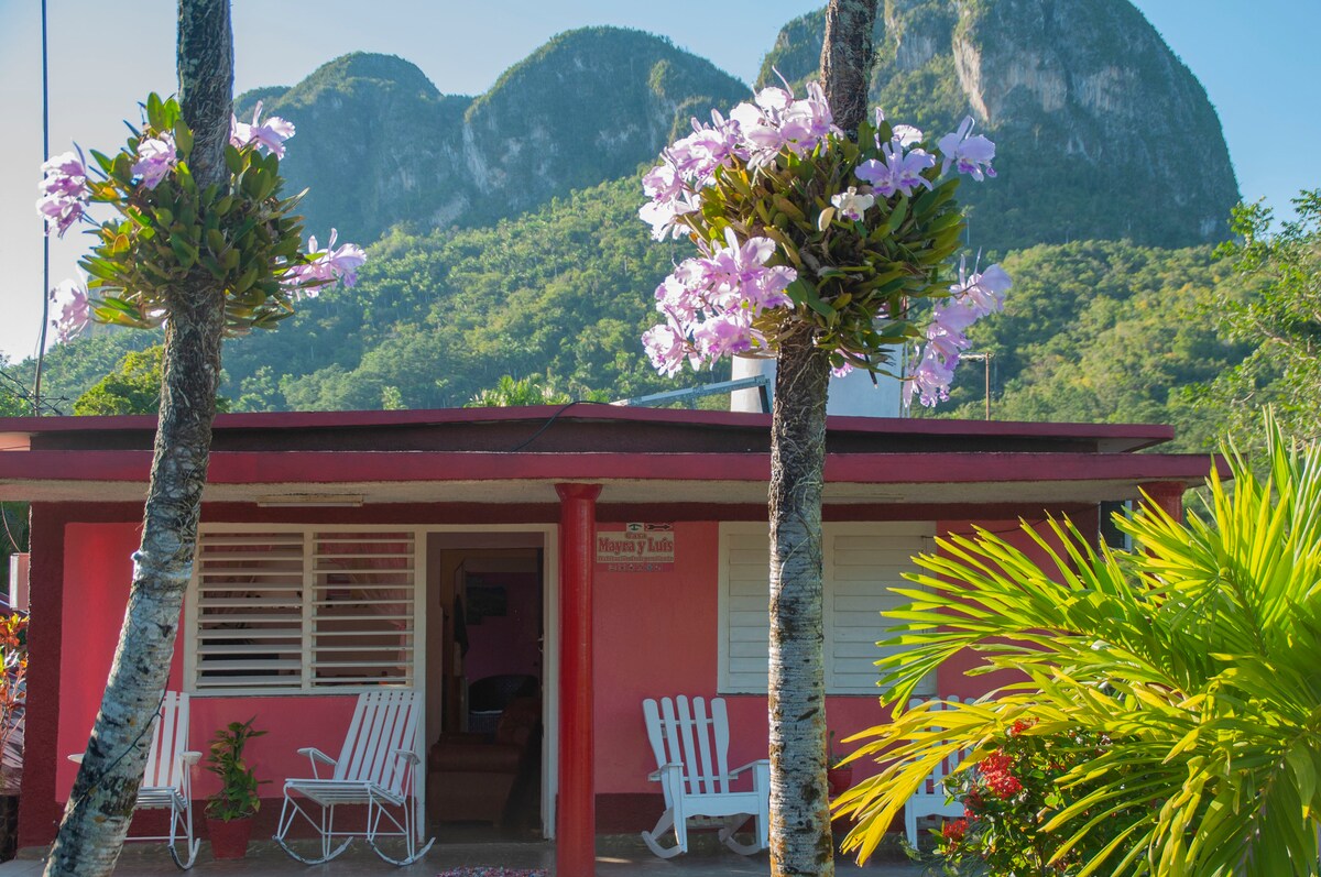 ECasa Mayra y Luis sikwamkela kwindawo yendalo yeViñales Valley, ejikelezwe ngamadlelo aluhlaza ibe ubona kakuhle iimogote kuzo zonke iindawo, kuquka nophahla lwethu. Siqeshisa ngegumbi elahlukileyo elinokuhlala abantu abayi-4, elinegumbi lokuhlambela labucala, umatshini okhupha umoya obandayo okanye oshushu nendawo ezolileyo. Sineepaneli zelanga eziqinisekisa ukuba umbane uza kuhlala ukhona naxa kunqabile. Sikwiikhilomitha eziyi-7 ukusuka edolophini ibe siquka ukukulanda simahla xa ufika.