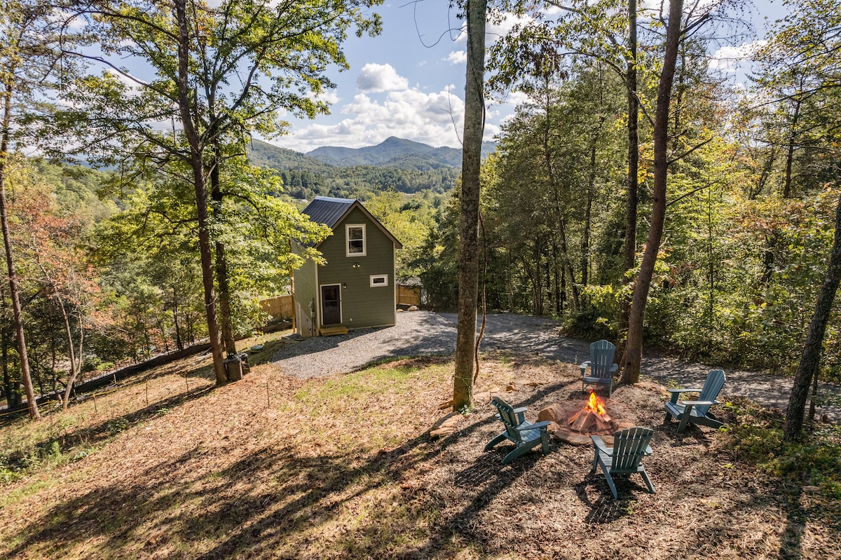 This custom home, built in 2020, is the perfect spot to unwind. Located off of a private road (4-wheel drive isn't necessary), it sits on 4.25 acres, w/gorgeous views of the Great Smoky Mountains. Once there, you truly feel removed from the world. Its modern, Scandinavian-Japanese design is unique to the area. Includes: master bedroom, sleeping loft (queen-sized futon and custom Twin XL bunk beds); open kitchen/living area, covered and open patios. 10 minutes from Bryson City and Cherokee.
