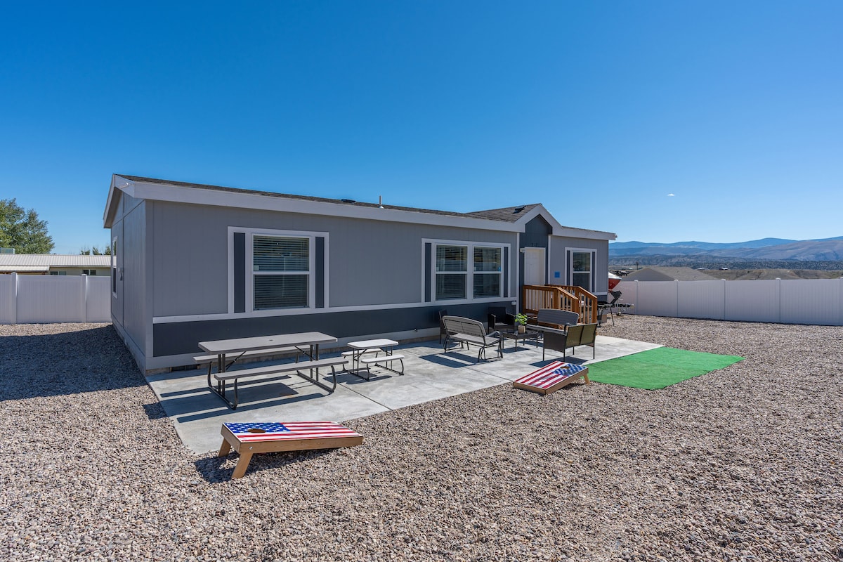 Yonwabela ikhaya lethu, lilungele iintsapho ezifuna ukuzonwabisa nokuphumla. Ihleli kwifama eneendawo ezintle, yindawo entle yokuya kufutshane nendawo yesikhephe iSheep Creek neLucerne Valley Marina-ilungele abantu abathanda ichibi. Imizuzu nje embalwa ukusuka ezintabeni onokufikelela lula kwiindlela ze-ATV, wonwabele ubusuku obufudumeleyo kwiveranda yangaphambili, ufote amaxesha entsapho angalibalekiyo ngenxa yobuhle bendalo. Igqityiwe ngento yokubraya, yindawo yakho efanelekileyo yehlobo eligcwele lilanga ngasechibini.