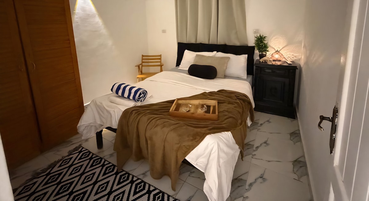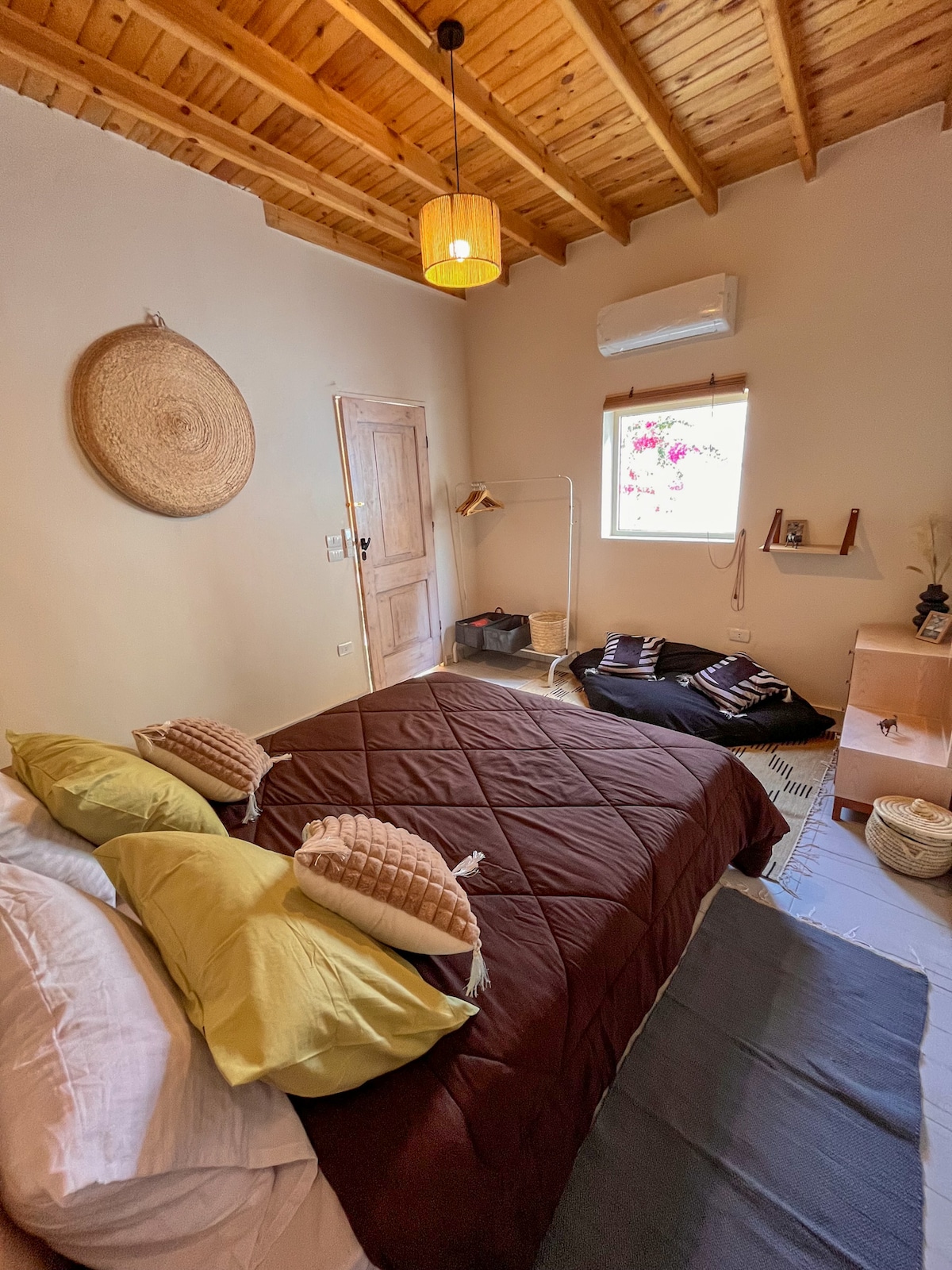 Tucked away in a quiet local neighborhood, this hidden Dahab gem offers comfort and privacy with a true sense of retreat, while still being only an 8-minute walk from the lively Lighthouse area and the beach. Wake to the sound of roosters and enjoy your morning coffee in the garden. At sunset, head up to the rooftop for sweeping views of Sinai’s changing colors, then end the evening around the peaceful garden fire under a sky full of stars, with the city glowing in the distance.