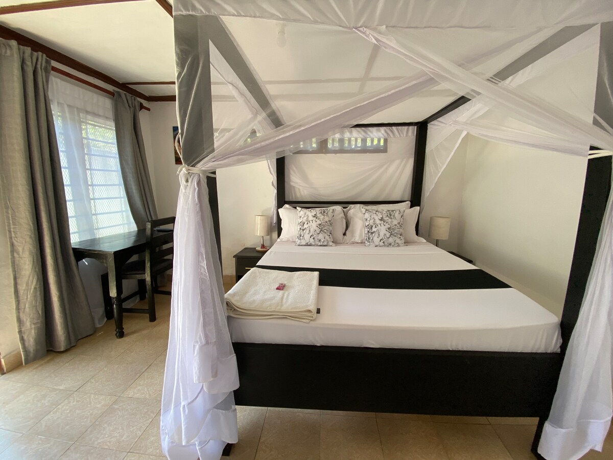 Wamkelekile kule ndlu imhlophe, inkulu nenomoya opholileyo yaseMalindi 1 BR Apt (kumgangatho wesibini) enebhedi enkulu elalisa abantu ababini malunga nemizuzu eyi-10 ukuya kweyi-15 ukuya eMalindi Beach naseTropical Beach. Yonwabela umoya opholileyo ngokusela kwindawo yebhalkhoni enezihlalo eziyi-2 netafile. Indawo yokupaka yasimahla i-Wi-Fi ekhawulezayo; i-Smart TV, iNetflix iyafumaneka. Ikhitshi linento yokupheka, imicrowave nezinto zokupheka. Yonke into oyidingayo ikufutshane neevenkile ezinkulu, iivenkile zokutyela nkqu neebhari. Ilungele abahambi bezoshishino nabahambi bezolonwabo