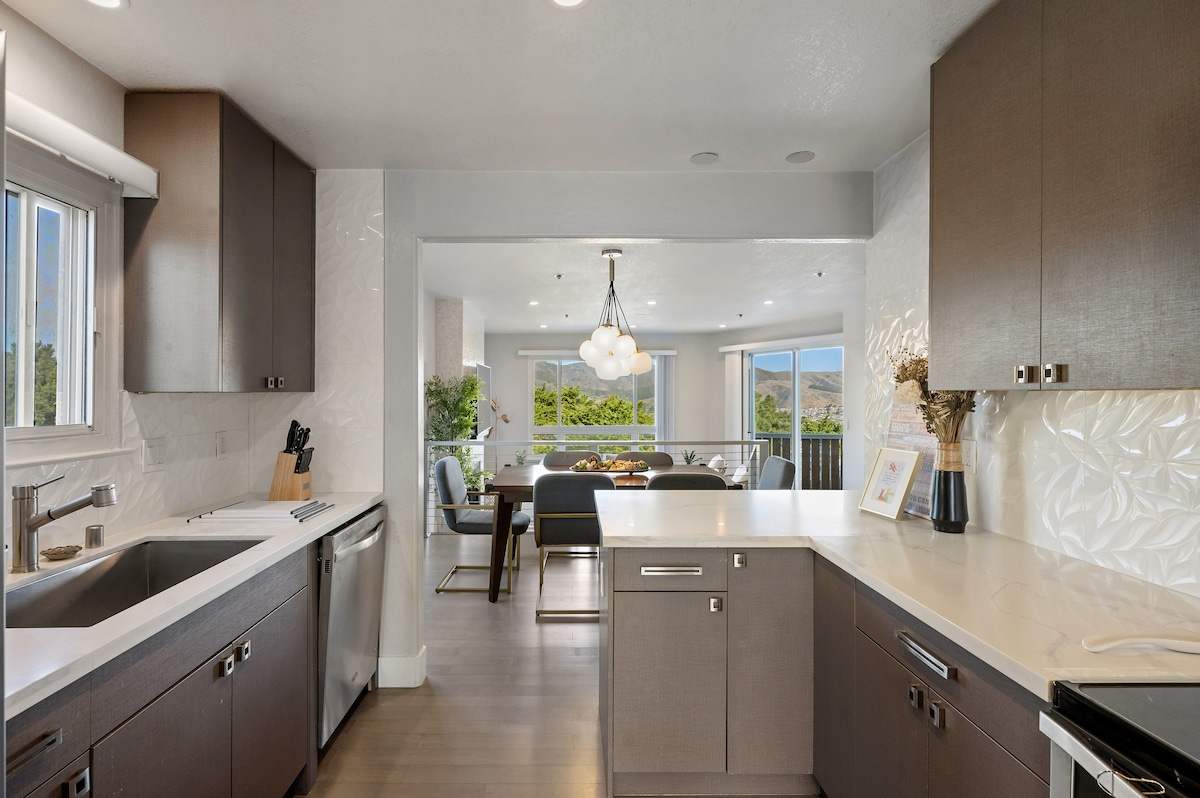 Ilungele abo bafuna ukubuka iSan Francisco neSilicon Valley besendaweni esembindini ekulula ukungena kuyo esixekweni, kwisikhululo seenqwelo-moya, kwiivenkile zokutyela, kwiivenkile zokuthenga nokunye! Indawo yethu esandul 'ukwenziwa eyi-3BD 2 BA inekhitshi elinento yonke, umgangatho weplanga nefenitshala, izinto zokuhombisa ezihonjisiweyo, ishawa yemvula yobunewunewu, indawo ekhethekileyo yokusebenzela, iWiFi enesantya esiphezulu ne-smart TV ekwiskrini esithe tyaba. Kwiveranda yethu engasemva evulekileyo, ungonwabela umoya ococekileyo kunye neendawo ezikude zesixeko neentaba.