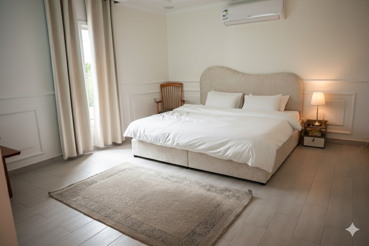 Yenzelwe ukuba ihambelane nezinto ozifunayo ize ibe lula, le ndawo iphawuleka ngokuba wedwa nokhuseleko ngendlela ekrelekrele, izinto ezifunekayo kwigumbi lokulala ukuze ube nobusuku obumnandi, ibhedi enkulu, i-smart screen yee-intshi eziyi-60, iWiFi nendawo ekuyo, ukuba kufuphi netreyini neziko lokuthenga elimalunga neekhilogram eziyi-4 ezenziwe ngemibala etofotofo nefenitshala yale mihla ukuze uhlale kamnandi ... Lala kamnandi ...