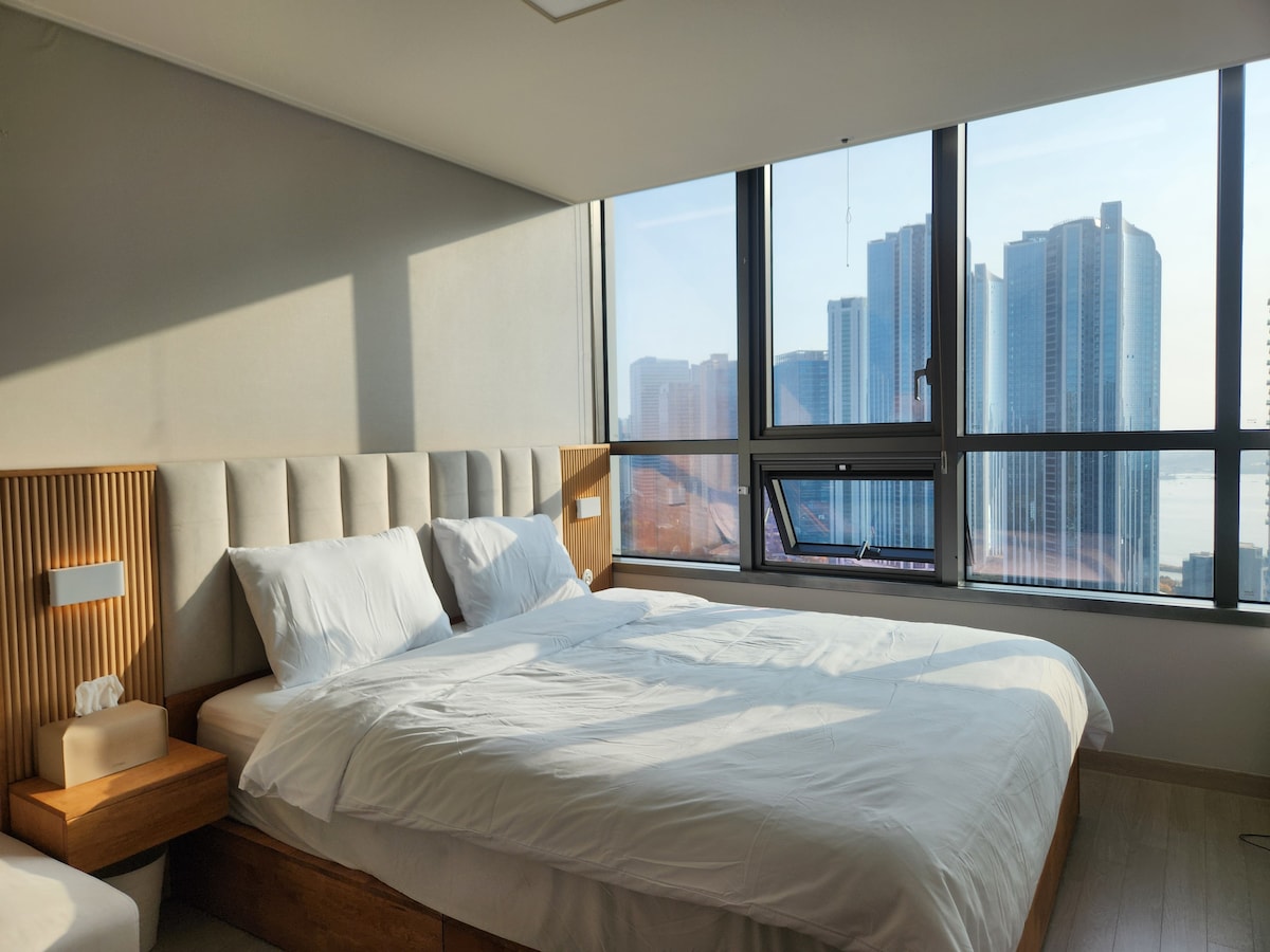 โ๏ธA/C on nowโ๏ธ โ Lots of restaurants, bar, cafes โ 5 min to Convensia, Mart, Park โ๏ธ28min by taxi($20) from Incheon Airport, 40min by direct bus 303-1, 6777($2) ๐ซงModern & Gorgeous days with a view better than a hotel๐ซง - Central Park, city view, night view, stunning sunset - Modern Italian luxury lighting and furniture๐ฎ๐น - Convenience facilities such as laundry, drying rack, cooking, and microwave suitable for long-term stays - Tableware, glasses, and bathroom supplies carefully considered